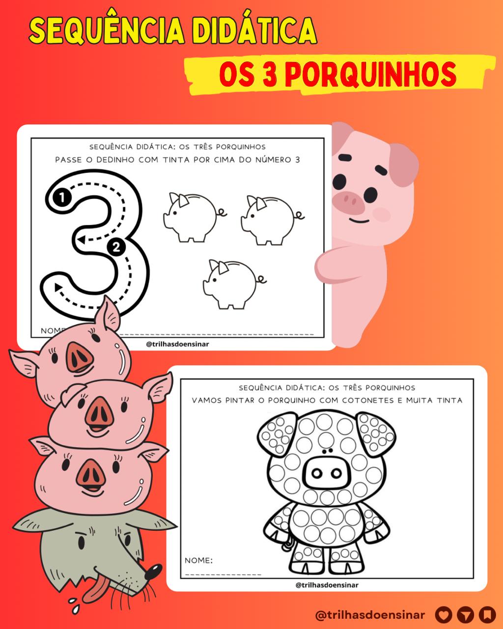 🐷 TRÊS PORQUINHOS – SEQUÊNCIA ATIVIDADES PARA EDUCAÇÃO INFANTIL🐷