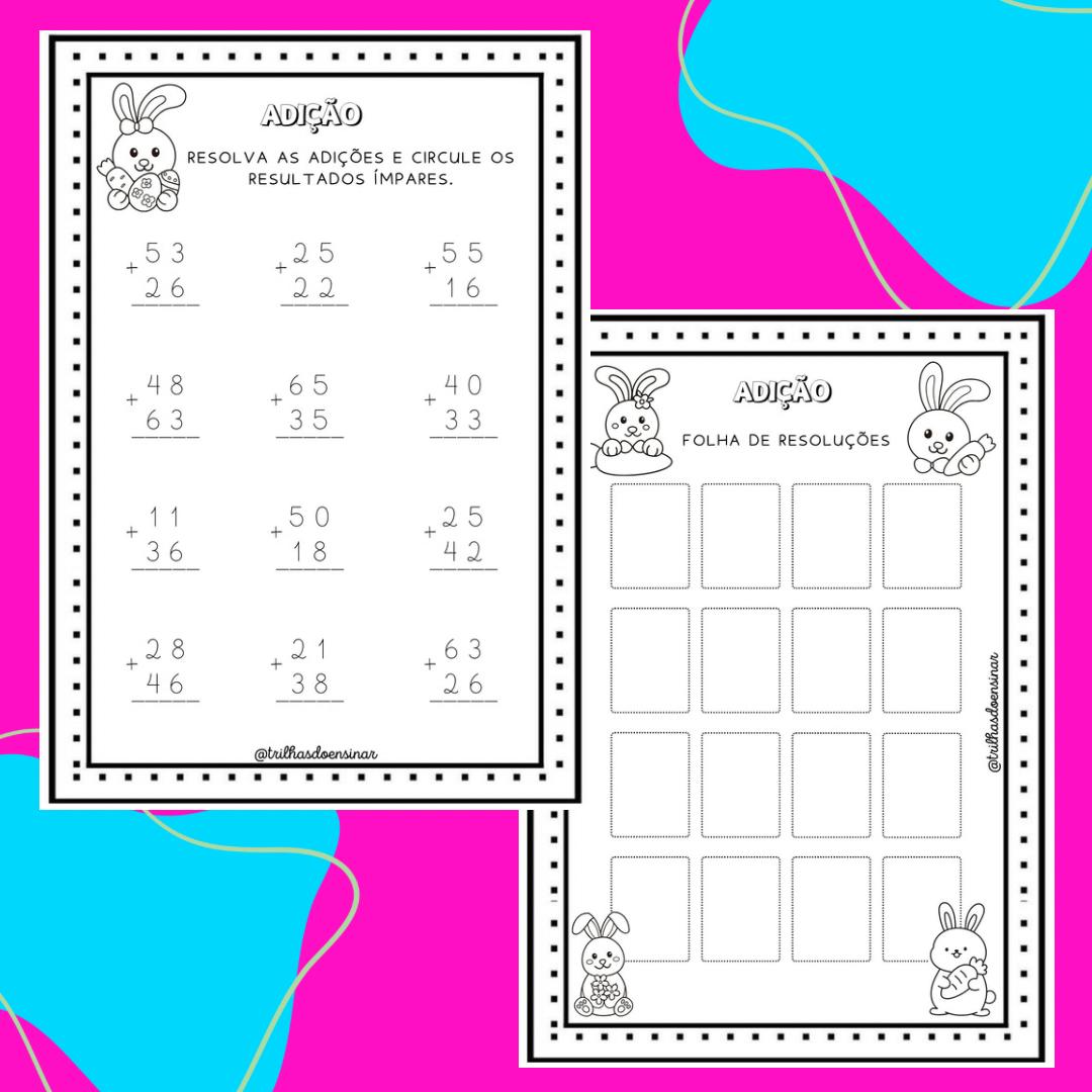 Prô, esse material vai te auxiliar no desenvolvimento do trabalho com a adição, além de facilitar seu planejamento para o mês de abril de forma contextualizada e fofa 😍🐰