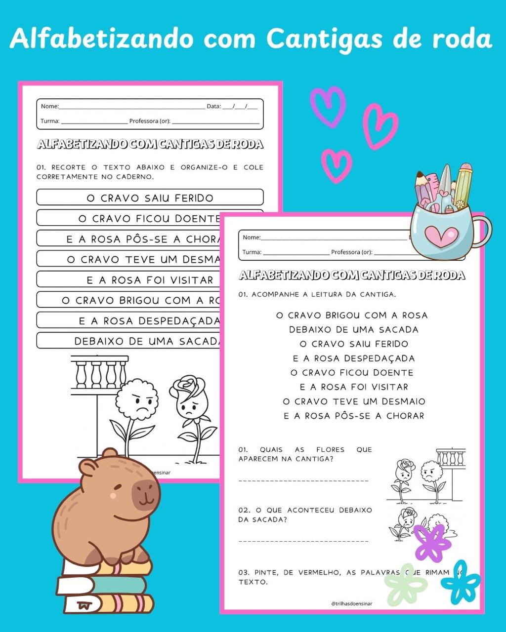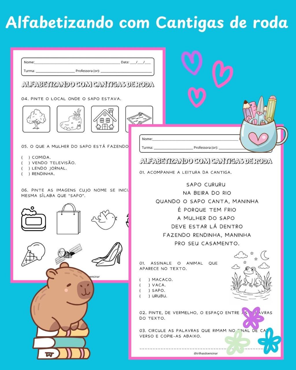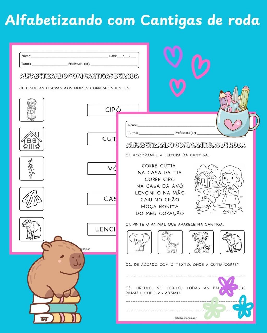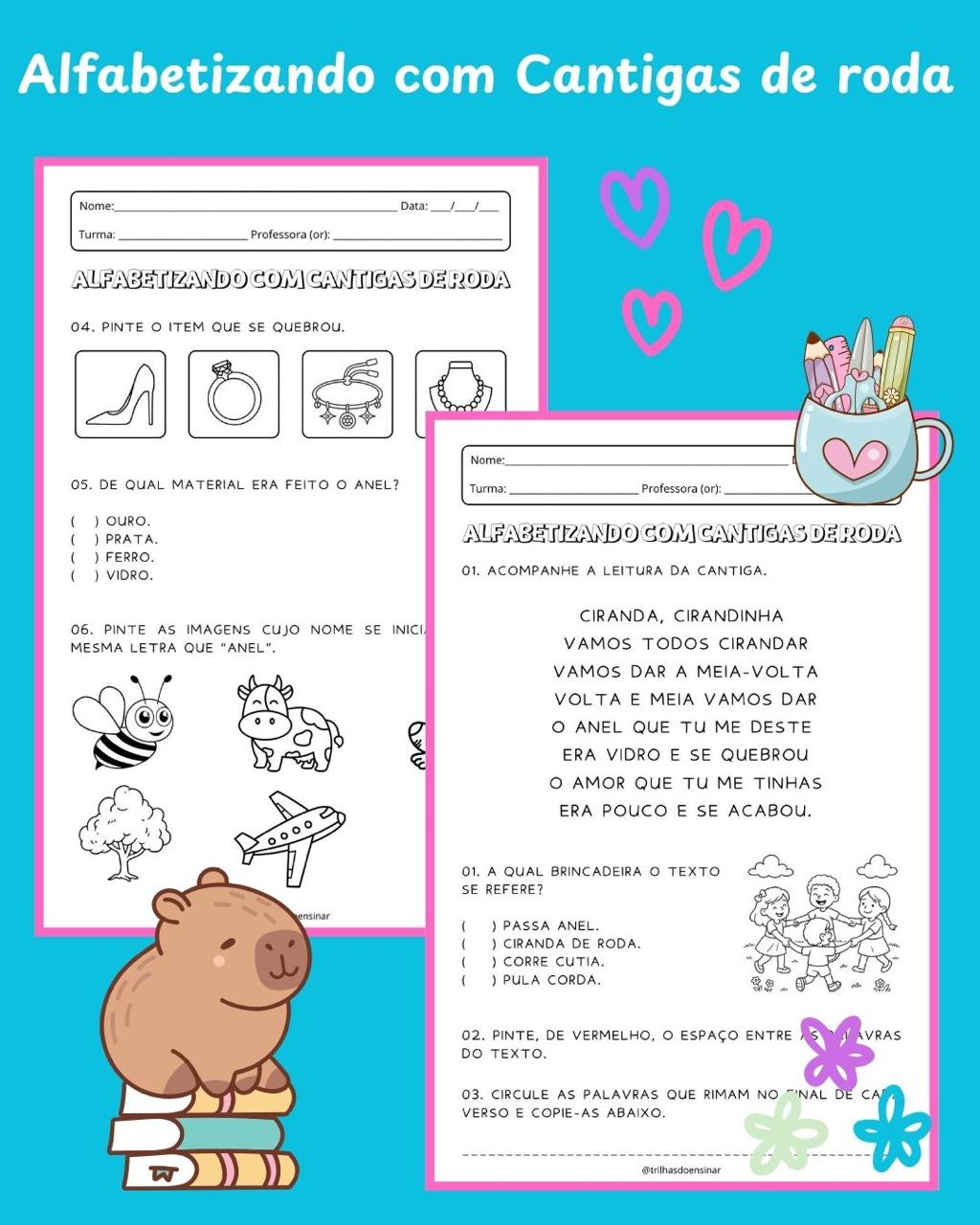 🎶🧒 Alfabetização com Cantigas de Roda – um material riquíssimo para desenvolver a leitura e a escrita com significado e encantamento! ✏️📖💛