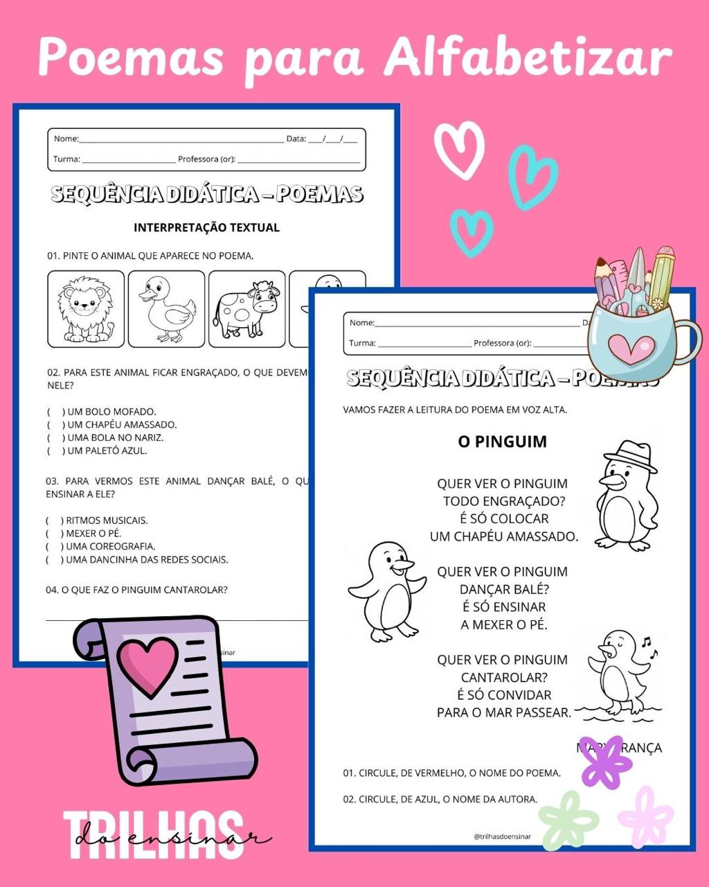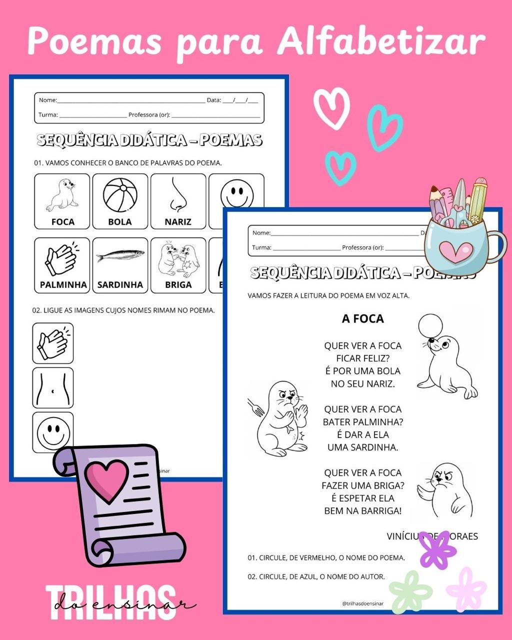 Apresentamos o novo recurso: Sequências Didáticas com Poemas para Alfabetização – uma forma mágica e significativa de desenvolver a leitura e a escrita! ✍️📖💡