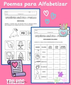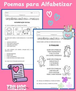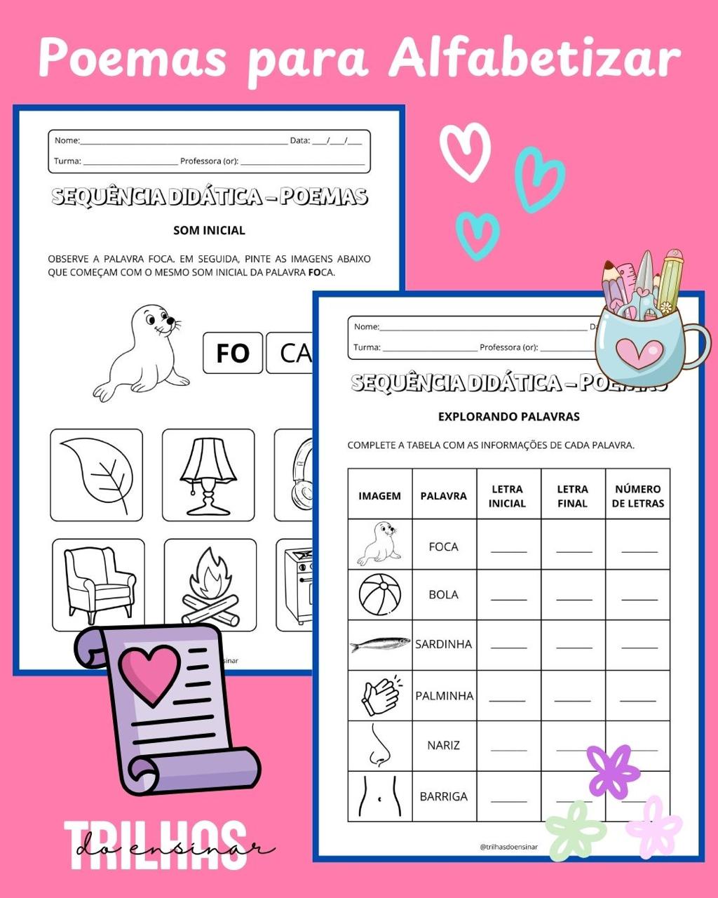 📄 São 5 sequências didáticas completas, cada uma com dez páginas de atividades, com um total de 50 páginas de atividades contextualizadas, que exploram o gênero poema para alfabetizar de forma lúdica e criativa! 🎵📝