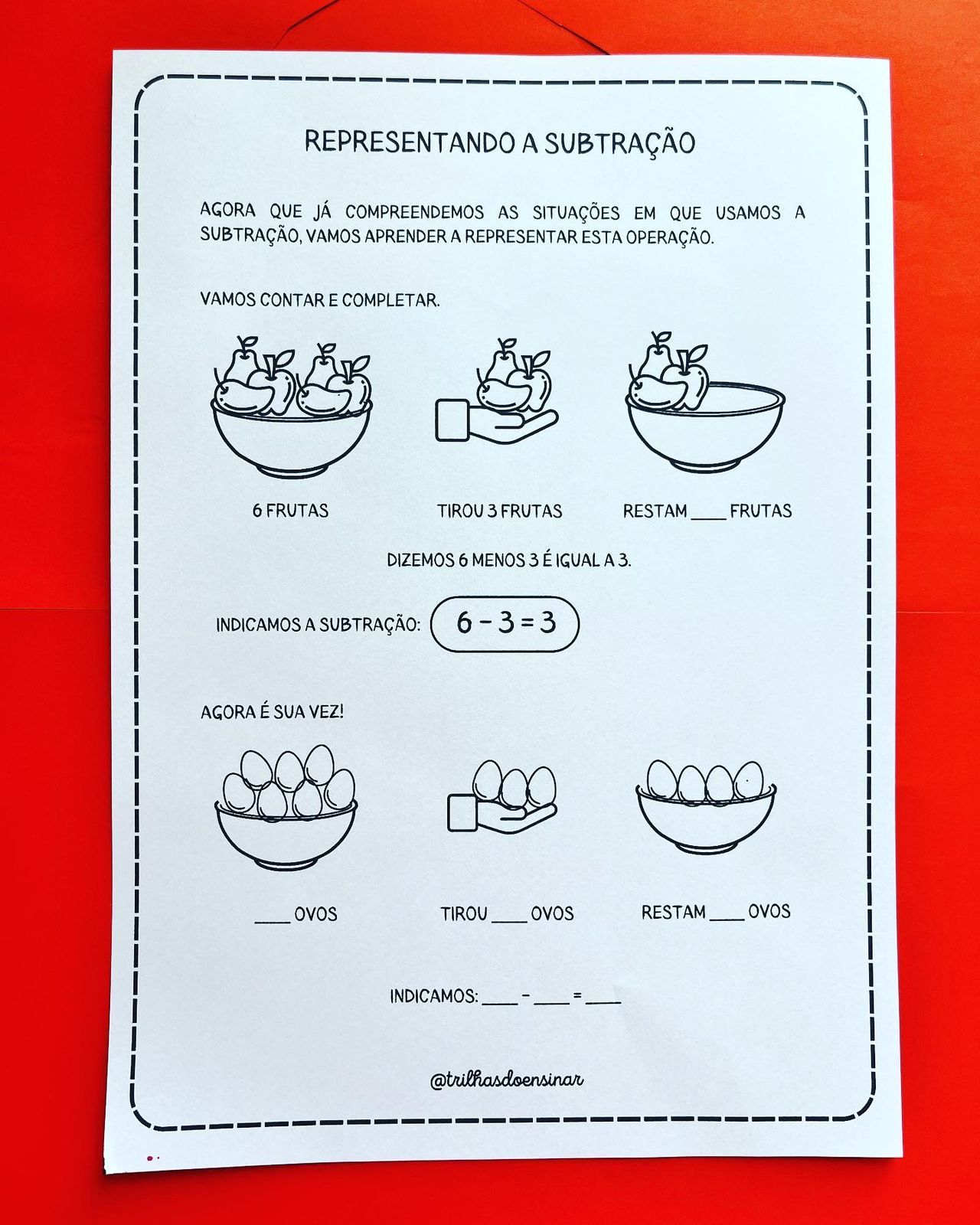 ✖️ APOSTILA DA SUBTRAÇÃO VOL. 1 – INICIANDO OS ESTUDOS DA SUBTRAÇÃO ✖️