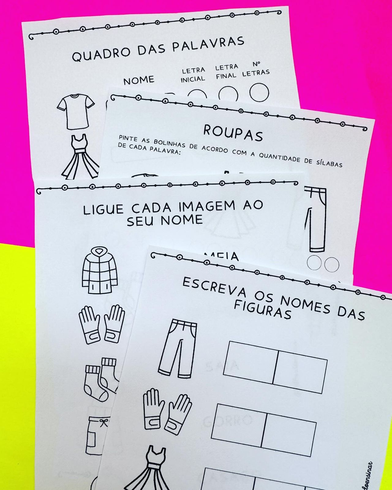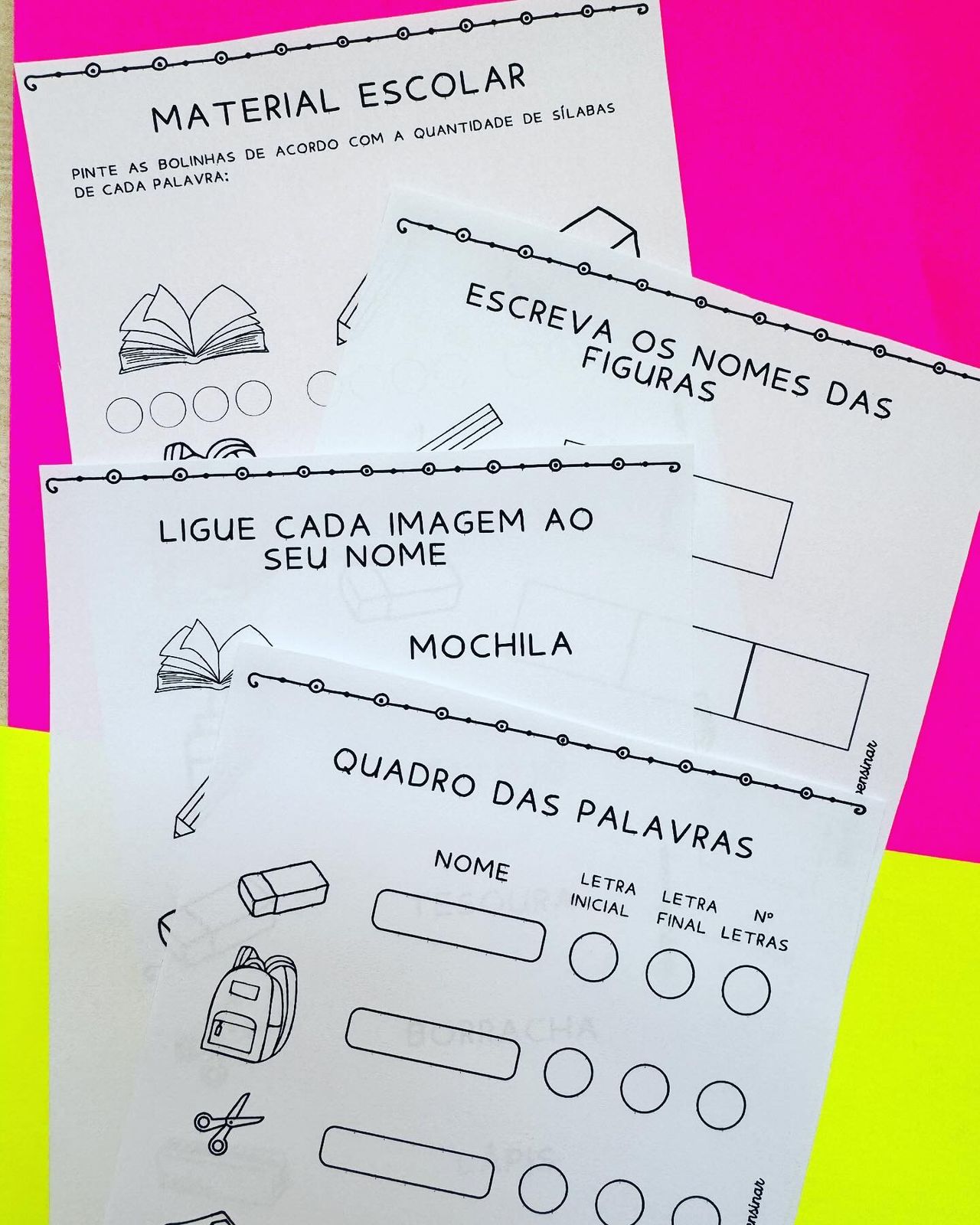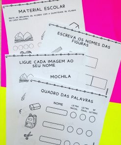 São 40 atividades (10 listas temáticas com 4 atividades cada lista) + capa e contracapa. Disponível nos modos: uma atividade por folha (arquivo com 42 páginas) e duas atividades por folha (arquivo com 21 páginas). Material em PDF pronto para impressão.