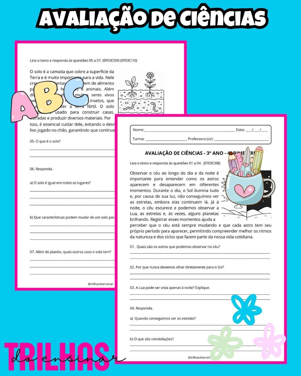 Chega de preocupação prô!! As avaliações são as queridinhas do nosso perfil e hoje trazemos para vocês as versões para o 4° bimestre – 3° ano: com códigos da BNCC, fichas avaliativas e gabaritos e naquele capricho que só o Trilhas faz para você! INÉDITAS!❣️❣️❣️