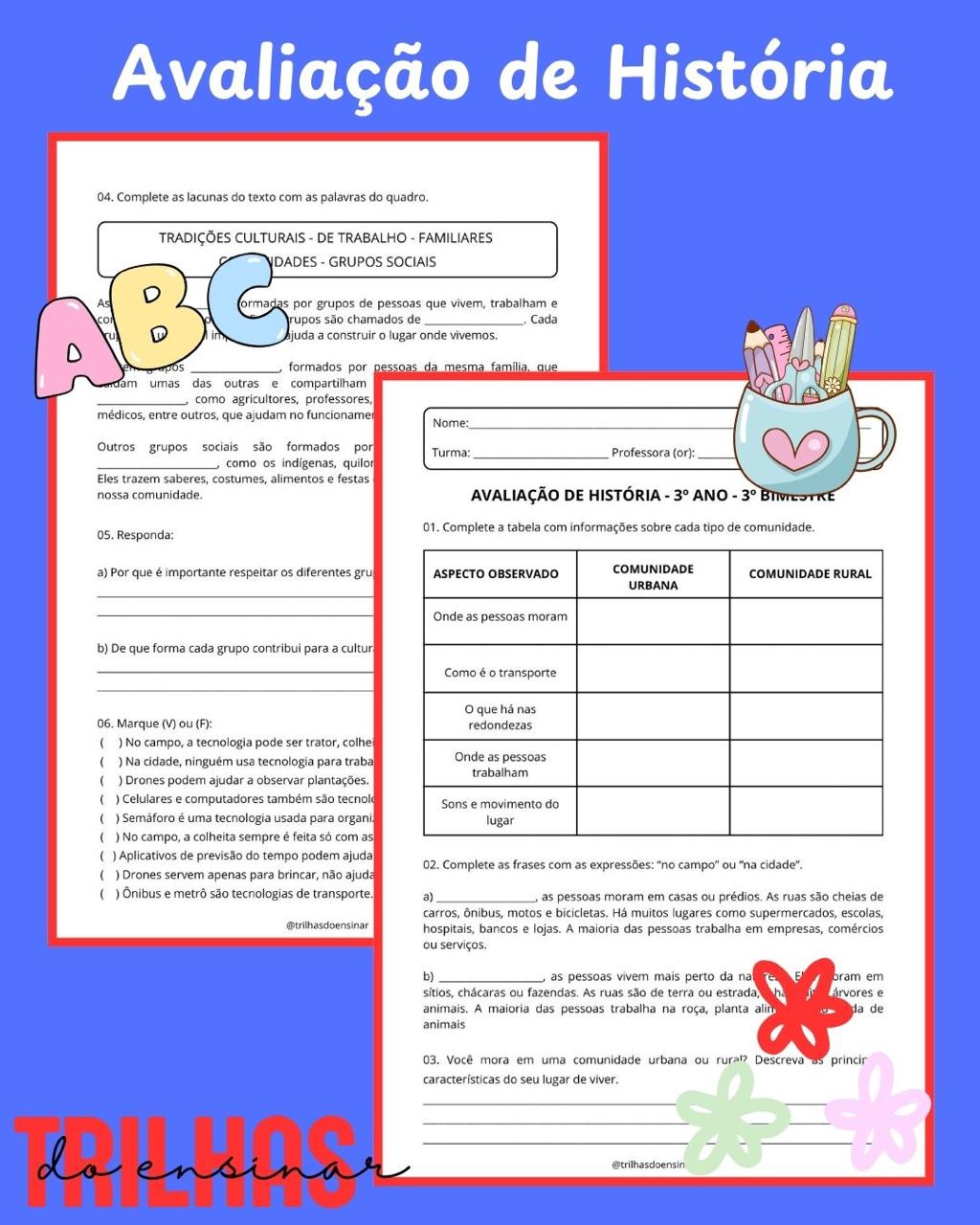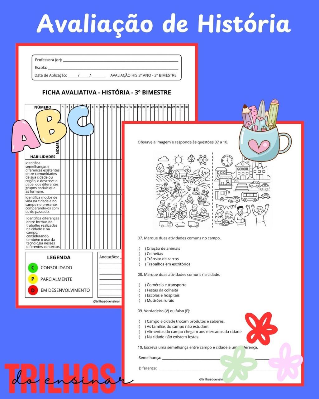 KIT AVALIAÇÕES 3° BIMESTRE / 3° ANO - HIS, GEO, CIE