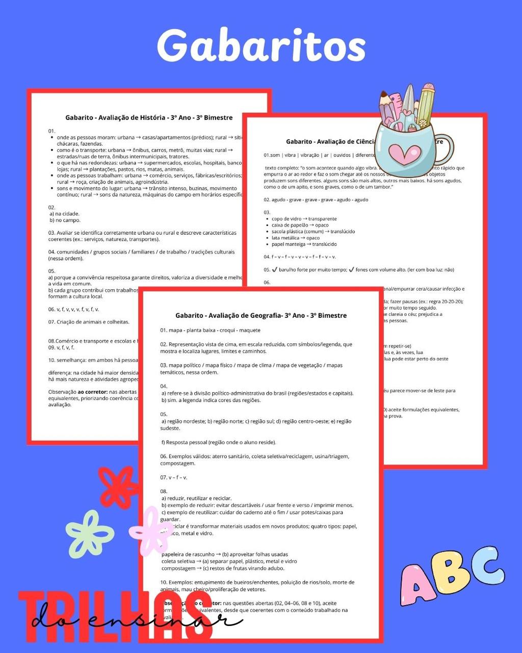 Chega de preocupação prô!! As avaliações são as queridinhas do nosso perfil e hoje trazemos para vocês as versões para o 3° bimestre – 3° ano: com códigos da BNCC, fichas avaliativas e gabaritos e naquele capricho que só o Trilhas faz para você! INÉDITAS!❣️❣️❣️