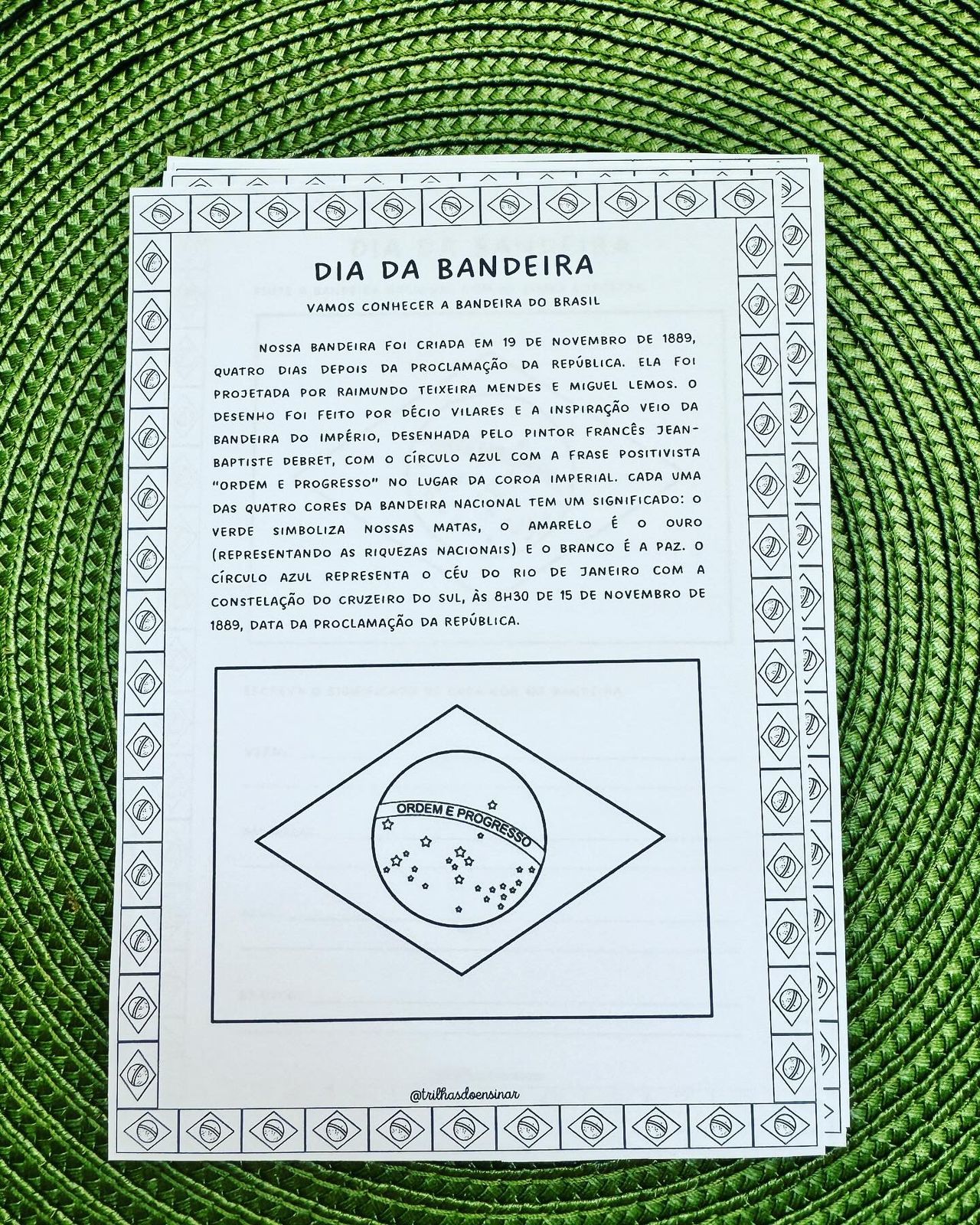Dia 19 de novembro é celebrado o Dia da Bandeira Nacional e preparamos para vocês essa sequência para trabalhar conceitos e atividades durante a semana toda!
