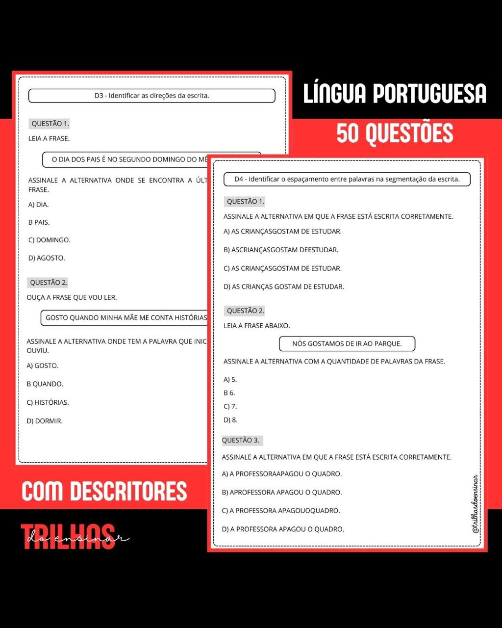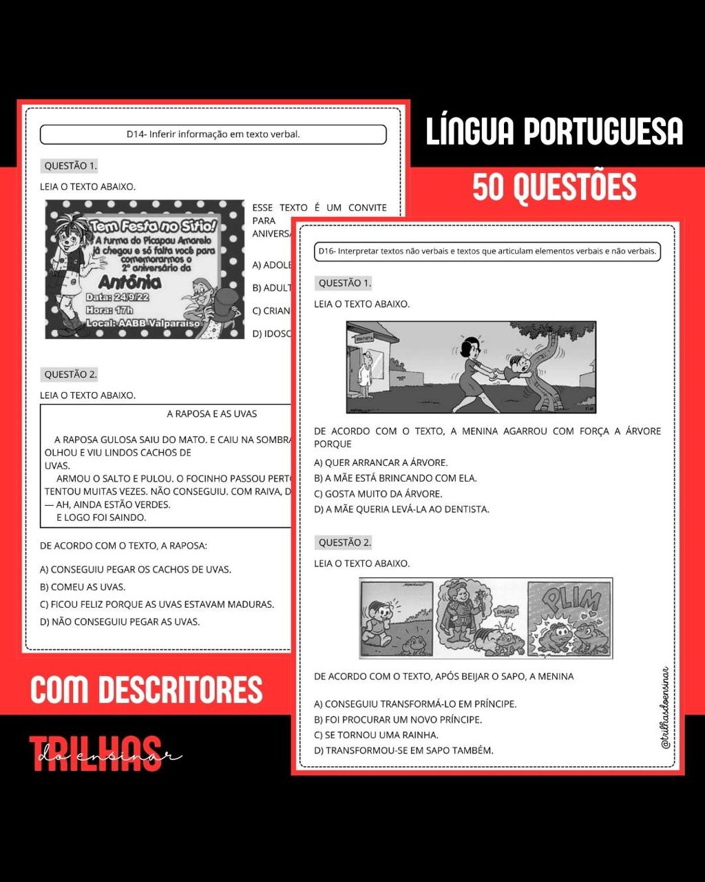 * LP: 50 questões | Matemática: 40 questões — organização clara para treino focado e progressivo. 📝🔢