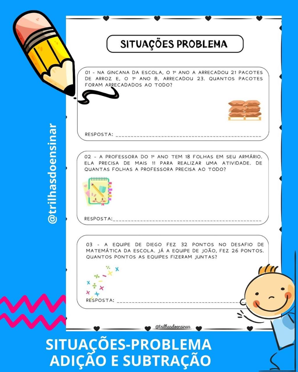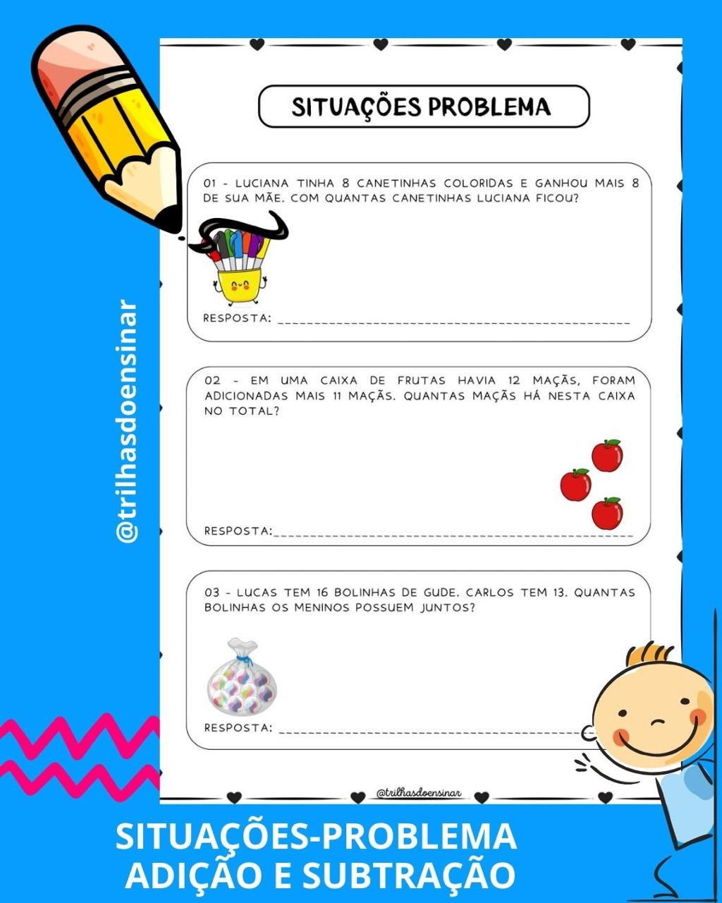 O Combo Probleminhas (adição e subtração) foi elaborado para os alunos do 1º ao 3º ano do ensino fundamental, podendo ser adaptado e utilizado de acordo com o nível dos seus alunos.