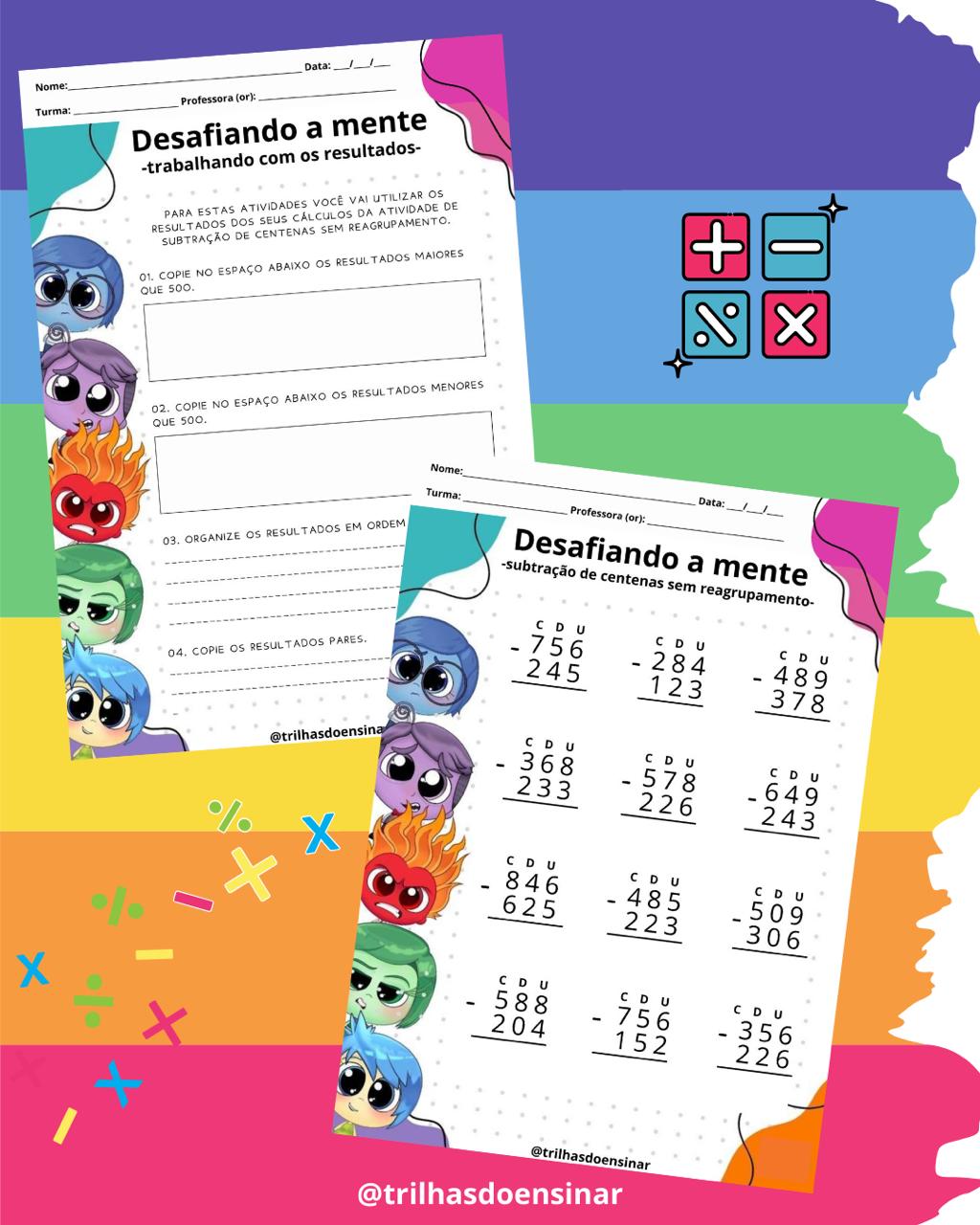 😍👉🏻Este recurso é divertidamente desafiador! Contempla algoritmos, adição com e sem reagrupamento, subtração com e sem reserva, números maiores e menores, ordens crescente e decrescente, números ímpares e pares e situações problemas.🥰😍