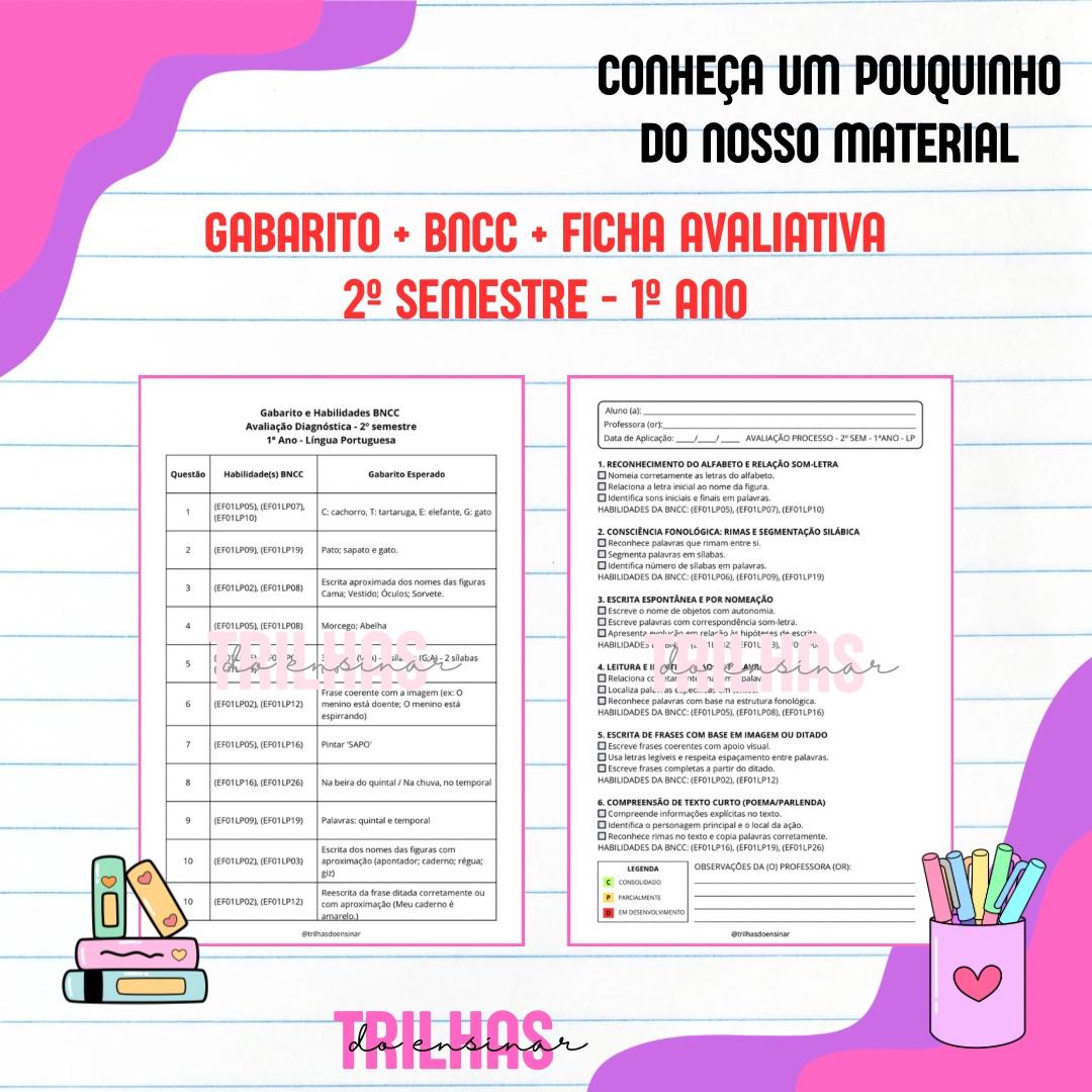 🎒 AVALIAÇÃO DIAGNÓSTICA 2º SEMESTRE – 1º ANO – LP e MAT