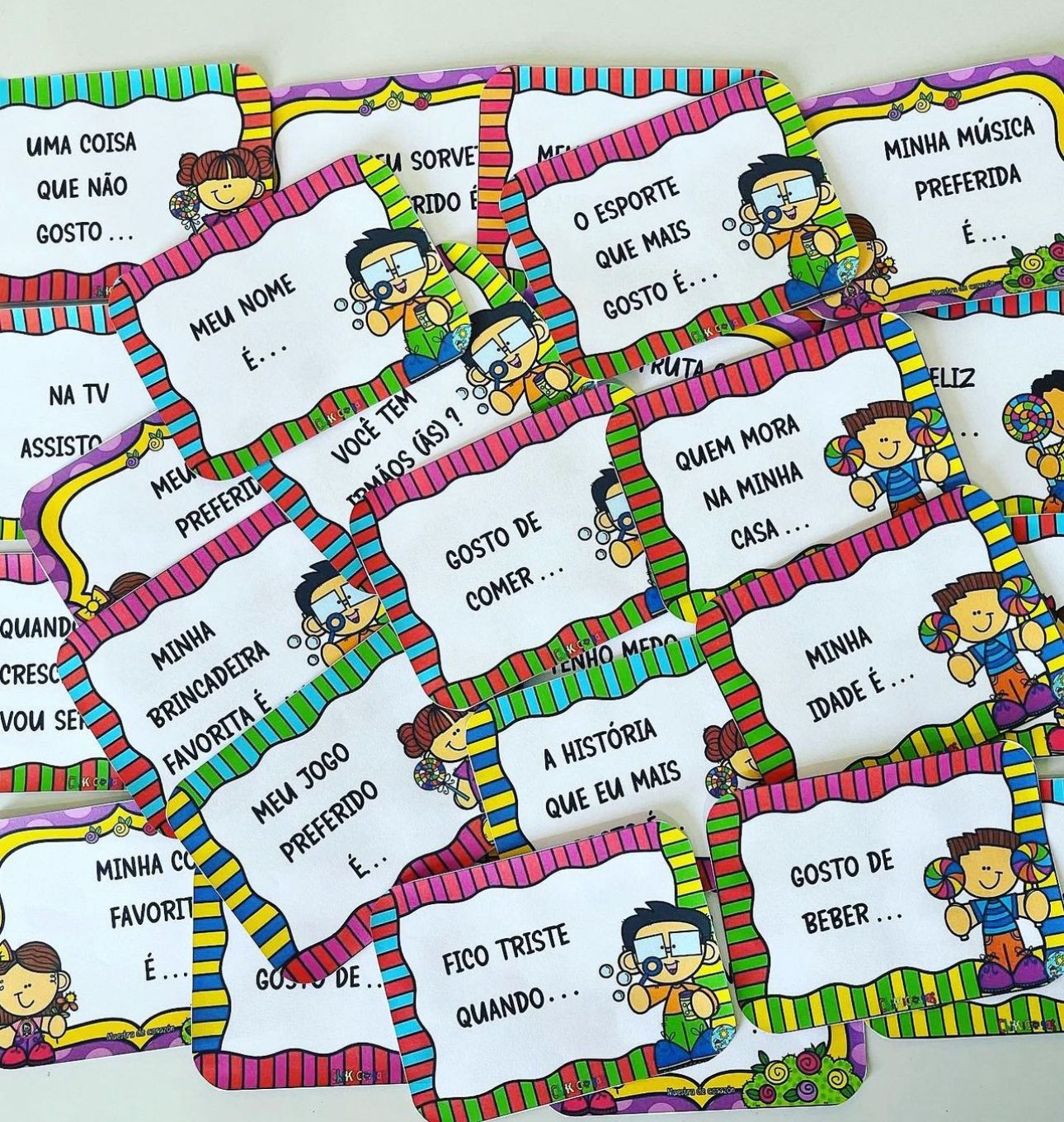 Material para dinâmica no primeiro dia de aula, proporciona integração e descontração do ambiente para um melhor acolhimento no início da nova etapa.