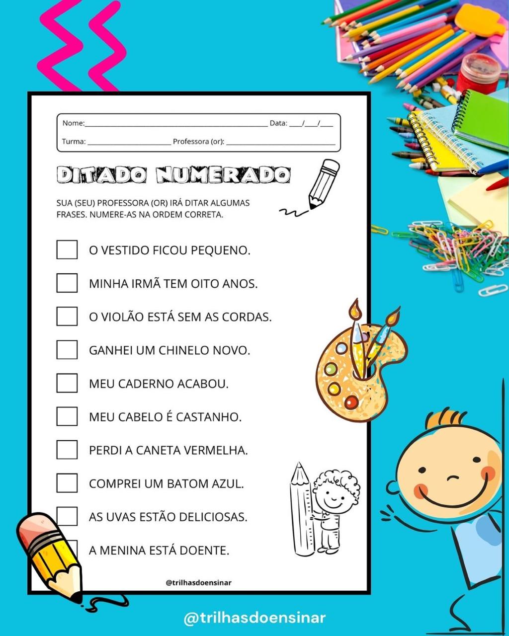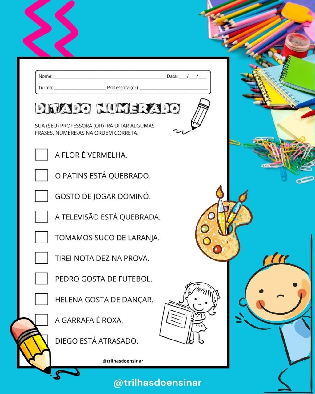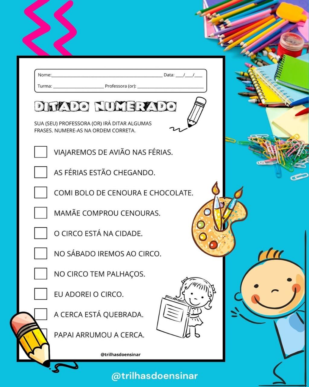São 10 páginas de atividades de ditados numerados inéditos para avançar a leitura da sua turminha. ✅❣️😍