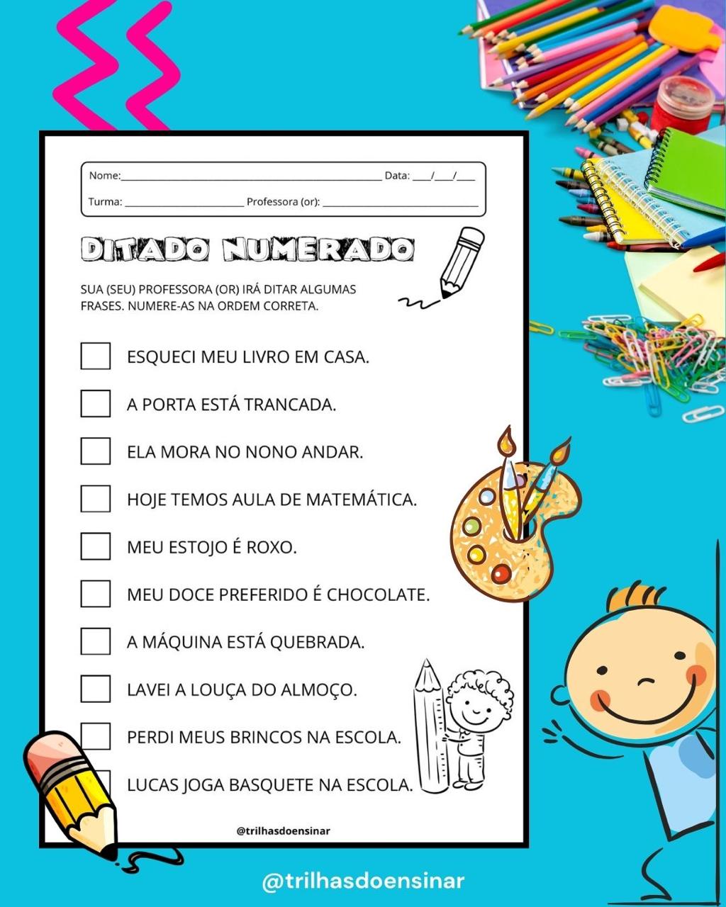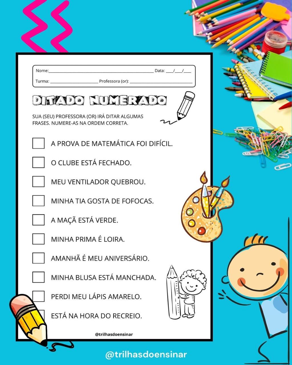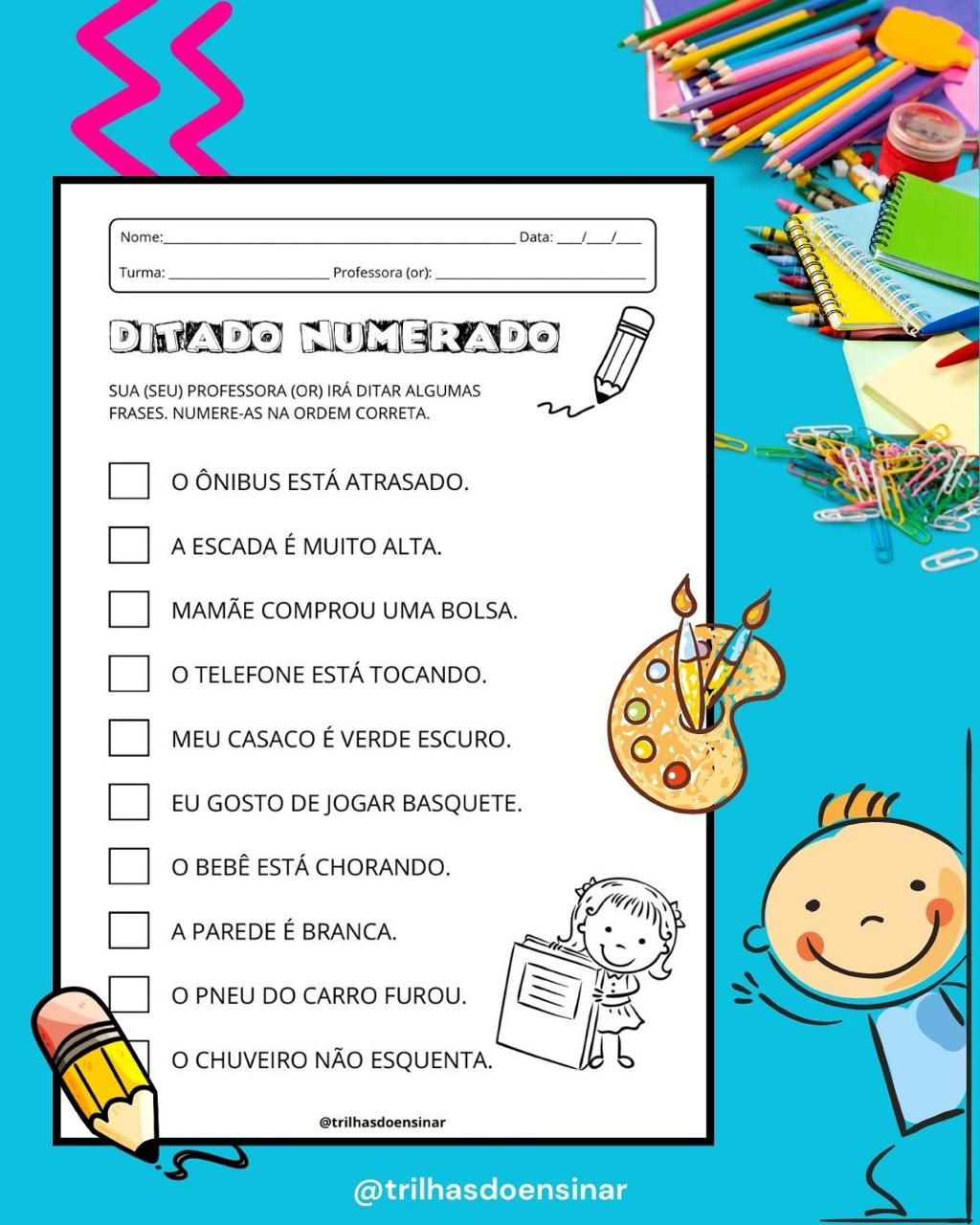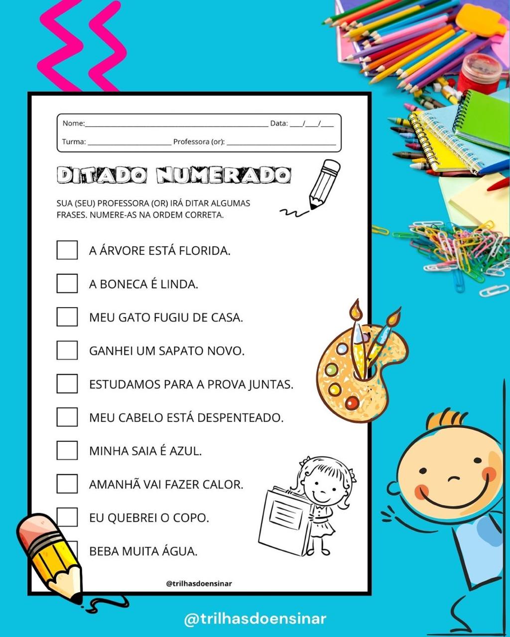 São 10 páginas de atividades de ditados numerados inéditos para avançar a leitura da sua turminha. ✅❣️😍