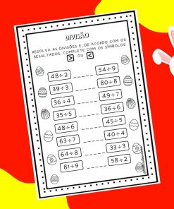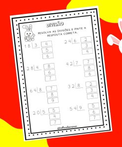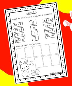 Prô, esse material vai te ajudar na revisão e fixação dos conteúdos relacionados à divisão, além de facilitar seu planejamento para o mês de março de forma contextualizada e fofa 😍🐰