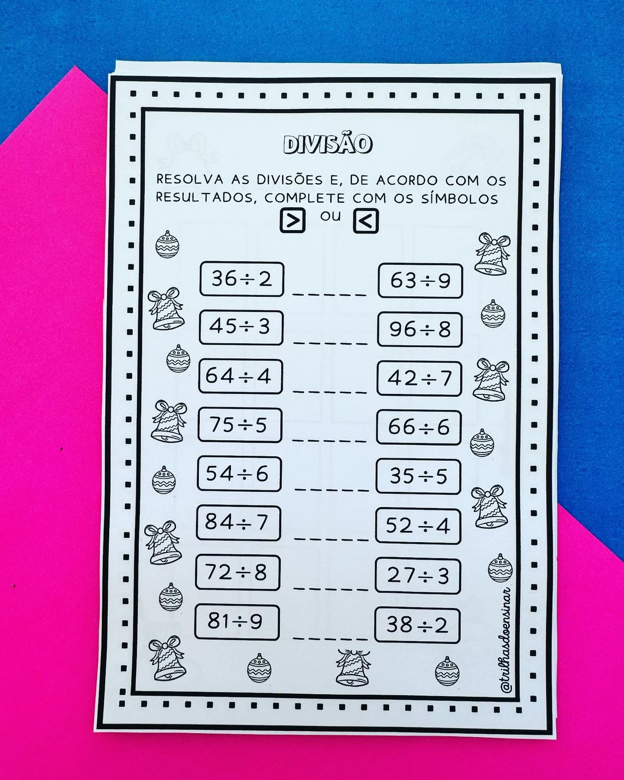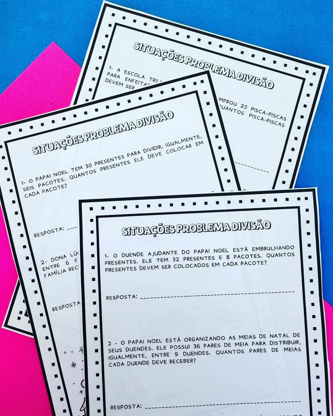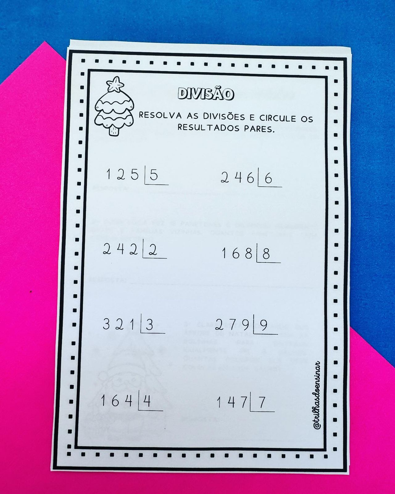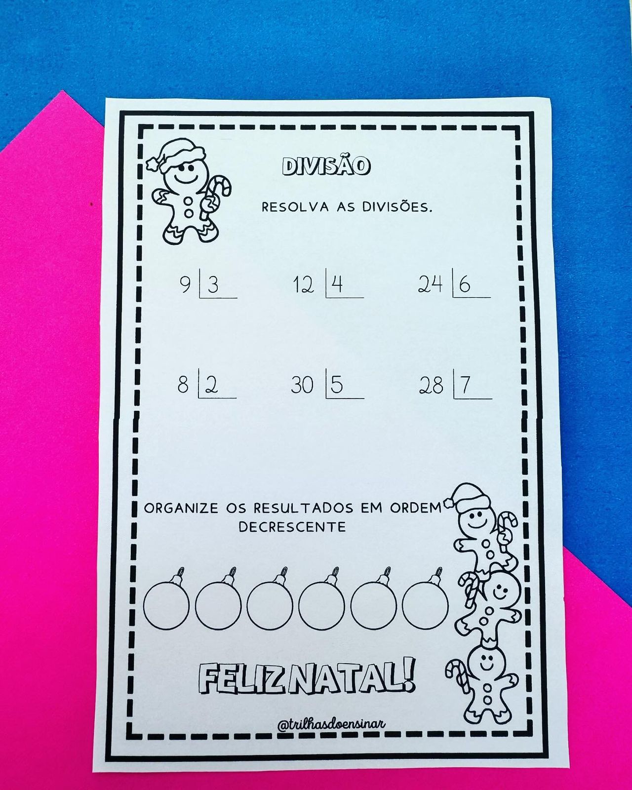 Prô, esse material vai te ajudar na revisão e fixação dos conteúdos relacionados à divisão, além de facilitar seu planejamento para o mês de dezembro de forma contextualizada e fofa 😍🎄