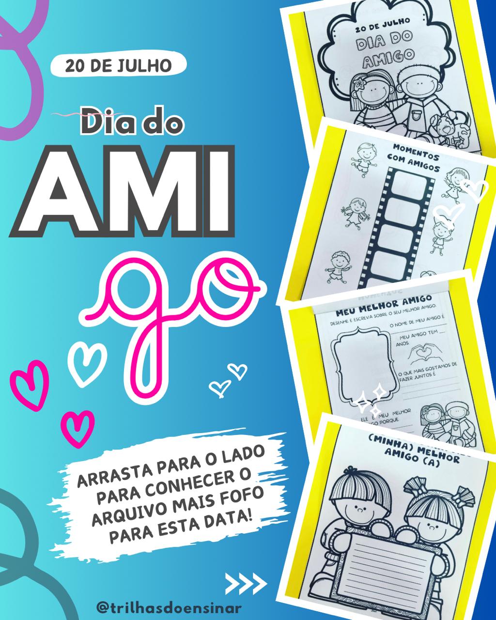 Celebre a amizade de forma especial na sua turminha com o nosso arquivo didático exclusivo sobre o Dia do Amigo! 📚✨ Descubra atividades divertidas e interativas para comemorar essa data tão especial junto dis seus alunos.