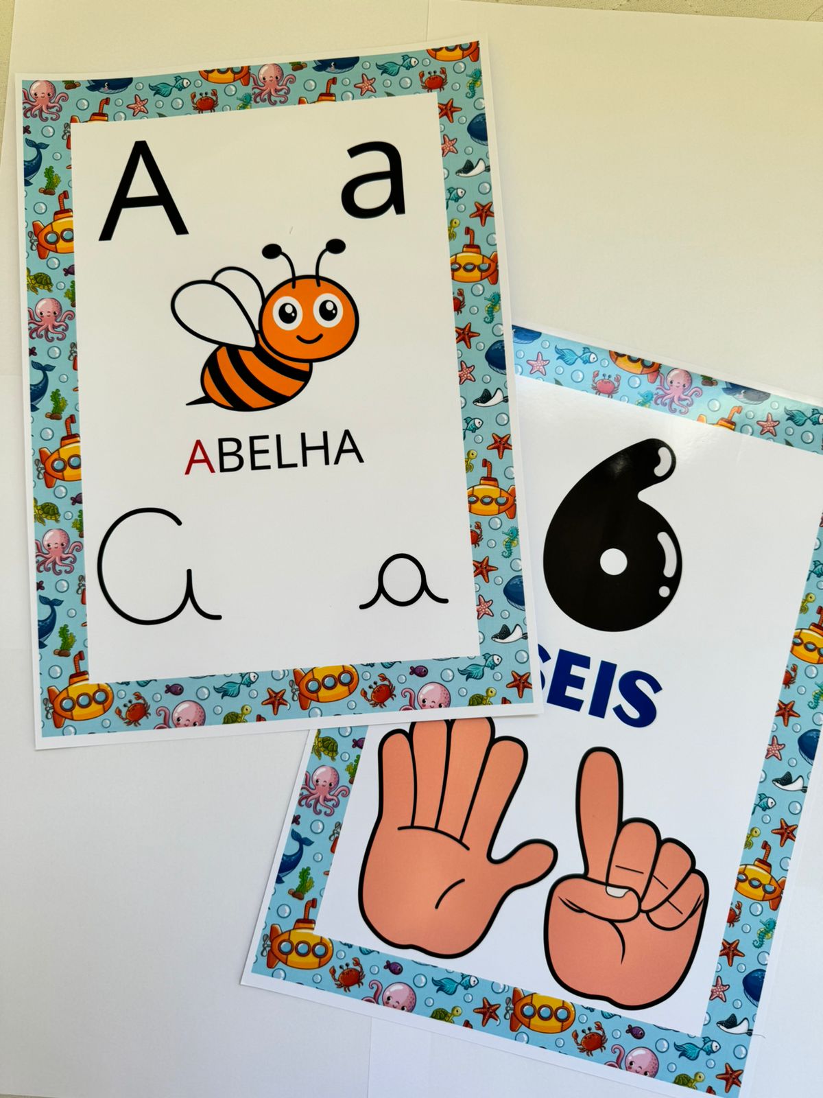 ❣️ ALFABETO E NUMERAIS DE PAREDE ILUSTRADOS – FUNDO DO MAR ❣️