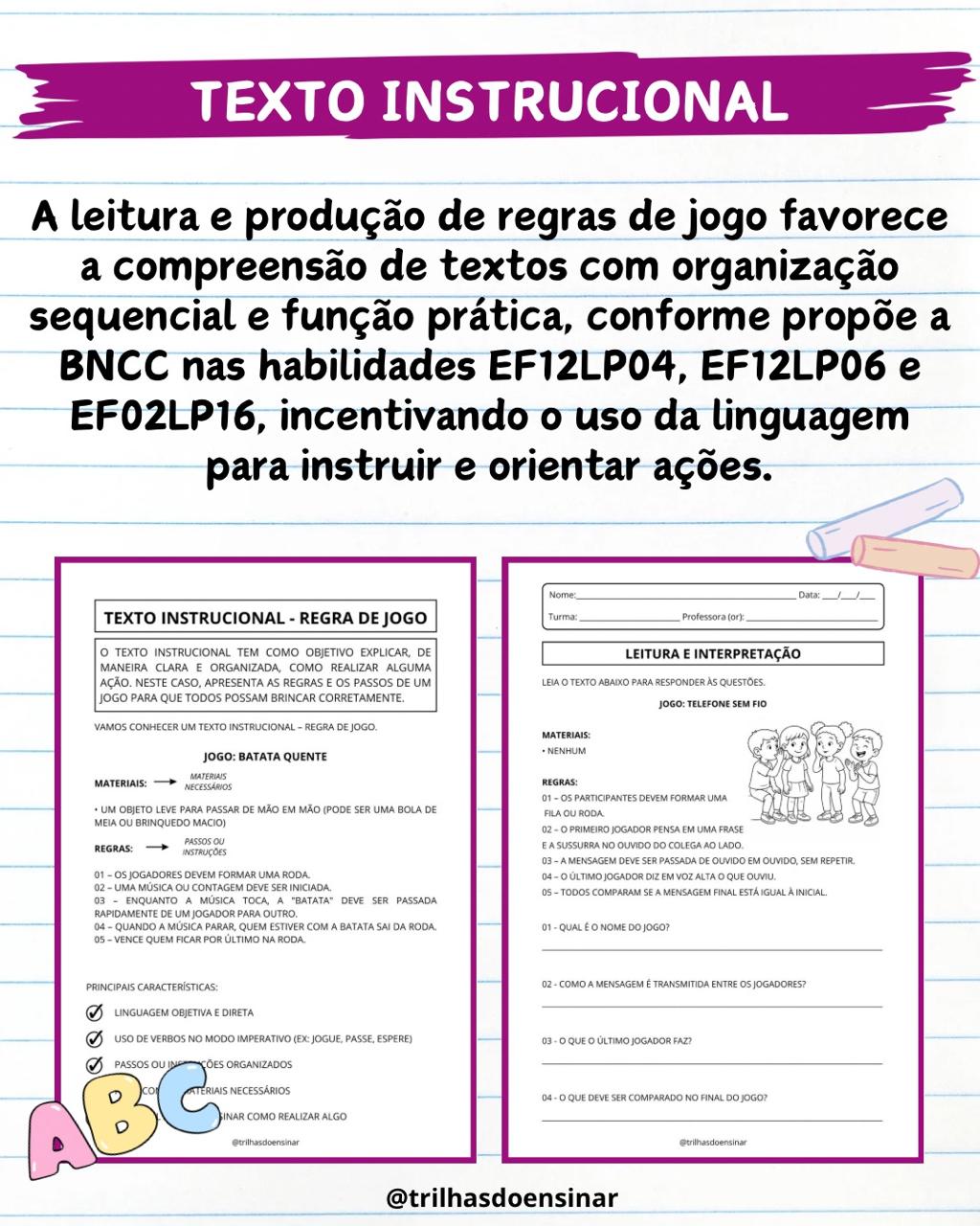 ✔️ 8 gêneros textuais trabalhados com intencionalidade: