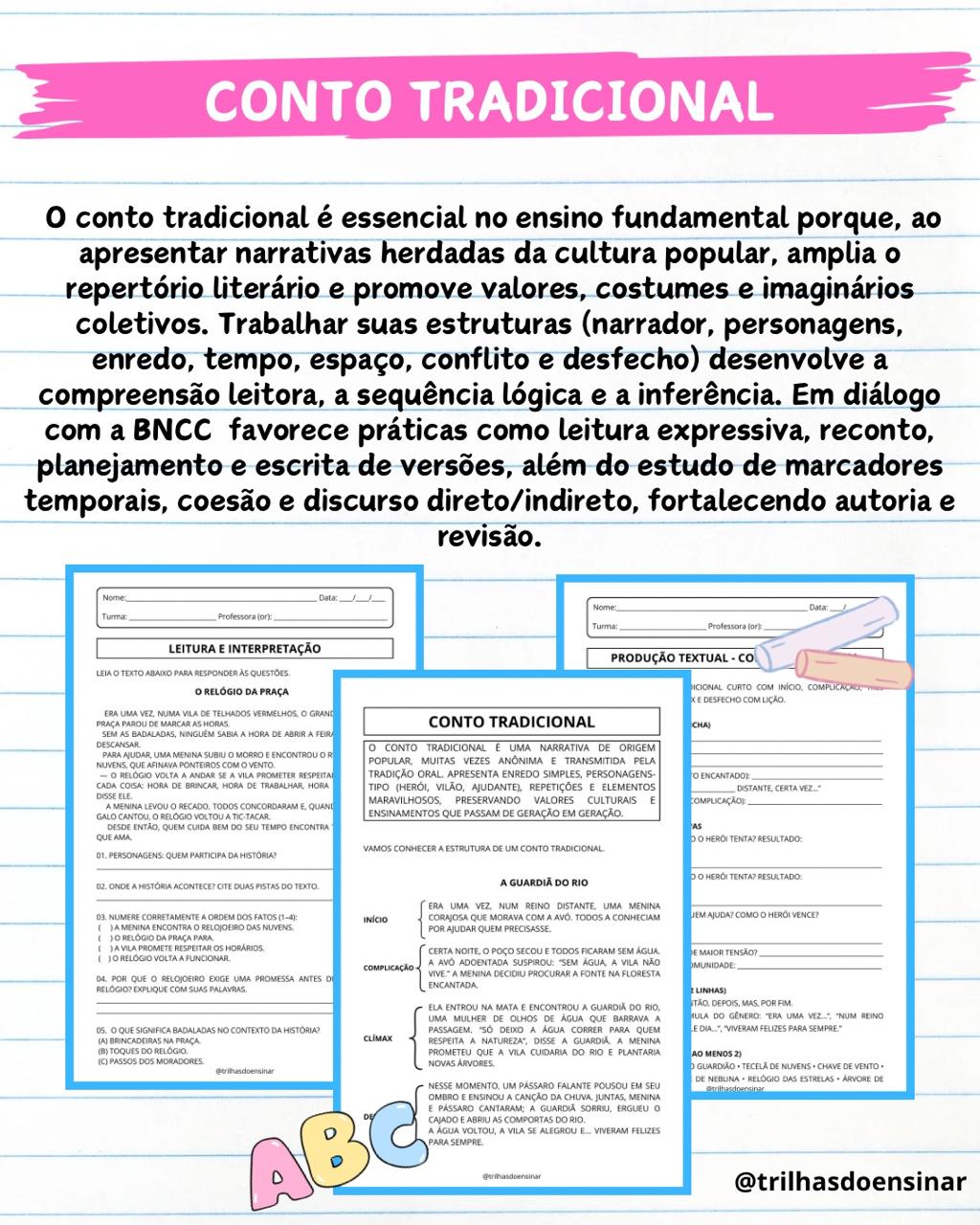 Tirinha, conto tradicional, conto acumulativo, lenda, relato de experiência, diário, texto de divulgação científica e notícia — um combo essencial para leitura, interpretação e produção ao longo do semestre. 📖🧠 em PDF – não editável e pronto para imprimir.