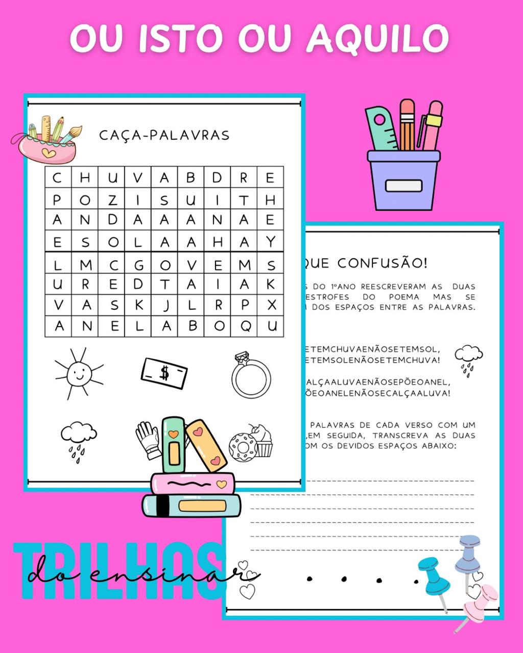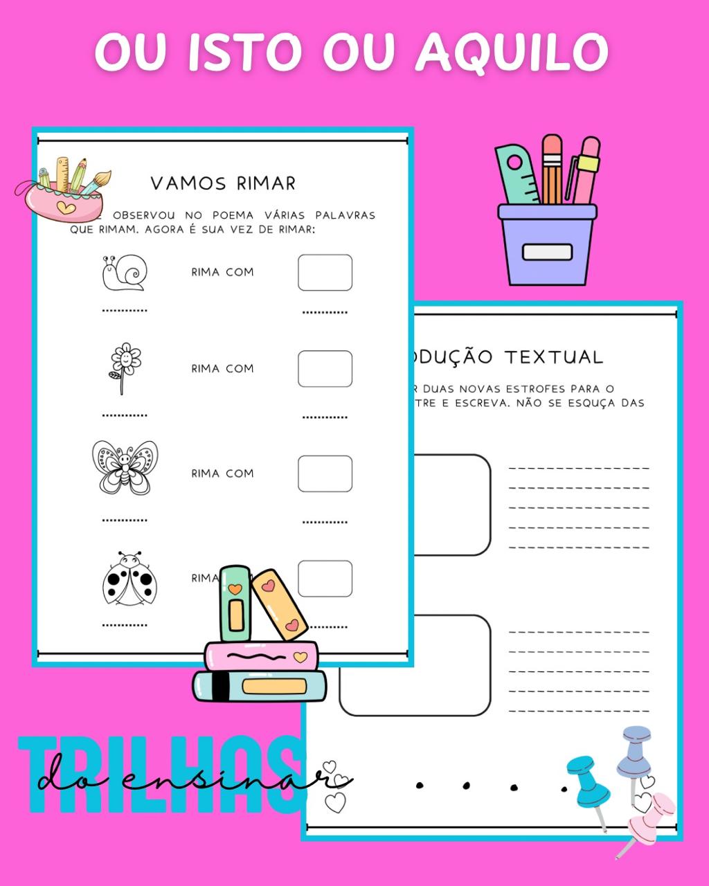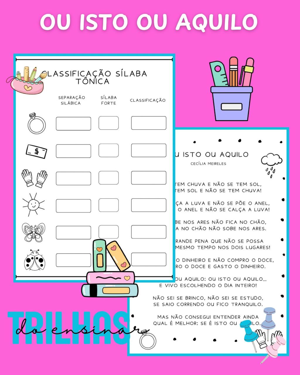 📖✨ Sequência de Atividades – “Ou Isto ou Aquilo” (Cecília Meireles), um recurso poético e pedagógico ideal para tornar a alfabetização mais rica, sensível e significativa! 🌷✏️