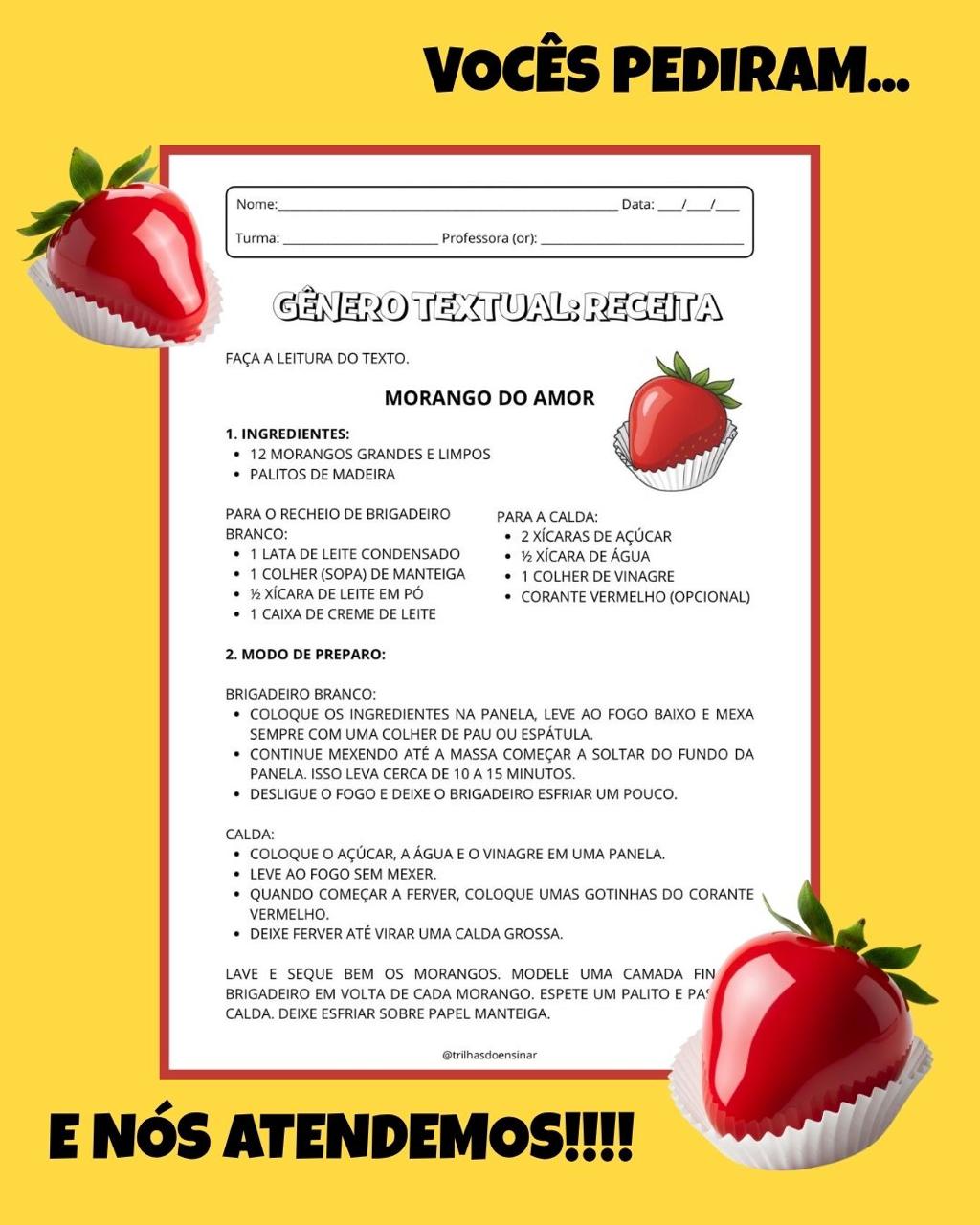 💡 Ideal para trabalhar gêneros textuais de forma divertida e com muito sabor!
