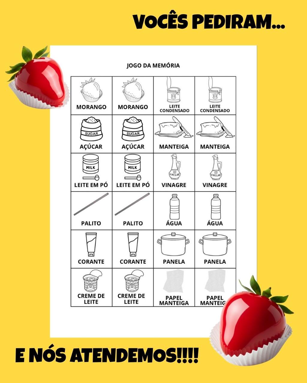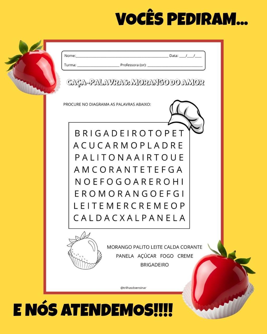 Apresentamos o arquivo MORANGO DO AMOR oi: uma receita deliciosa recheada de leitura, interpretação, escrita criativa, jogo da memória, caça-palavras e muito mais! 📚✍️🎲