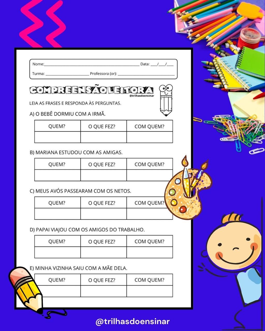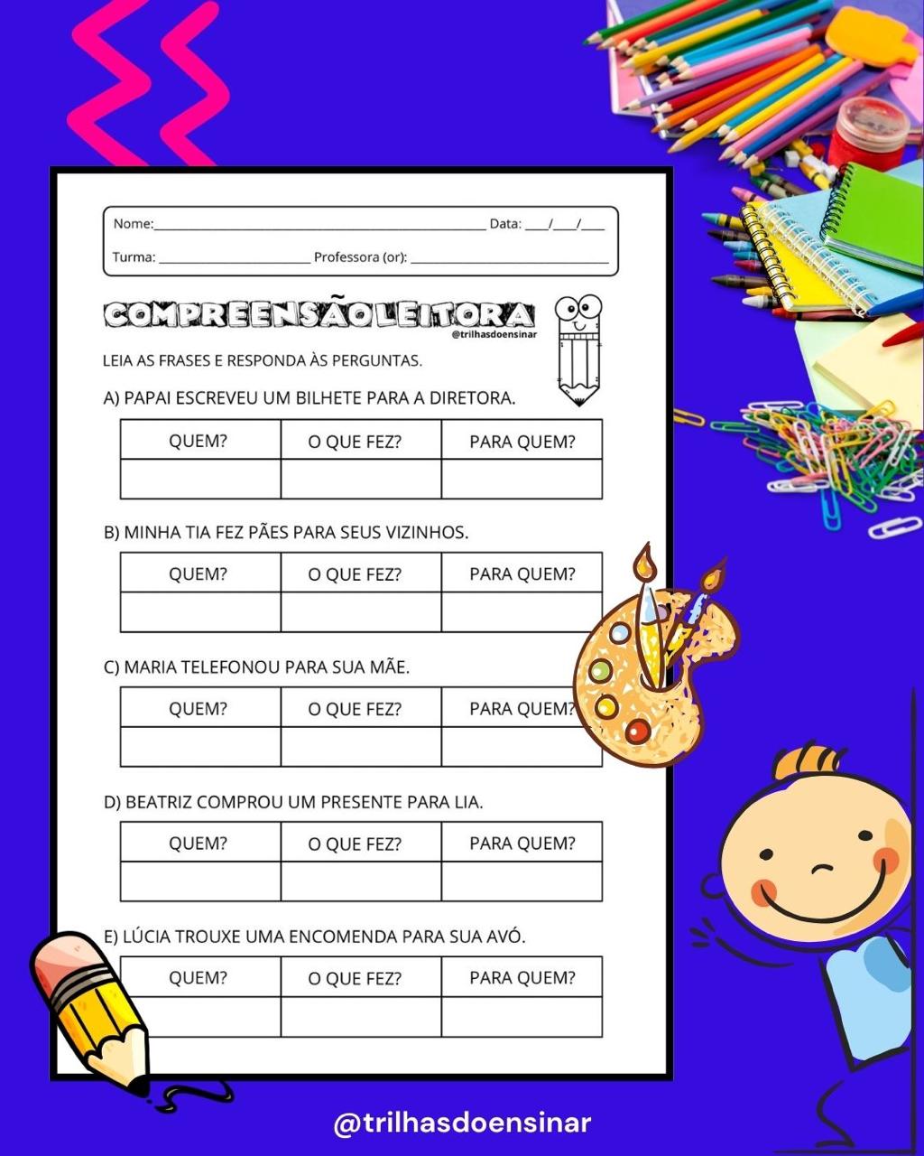 São 10 páginas de atividades inéditas totalmente focadas no desenvolvimento da compreensão leitora a partir de frases. ✅❣️😍