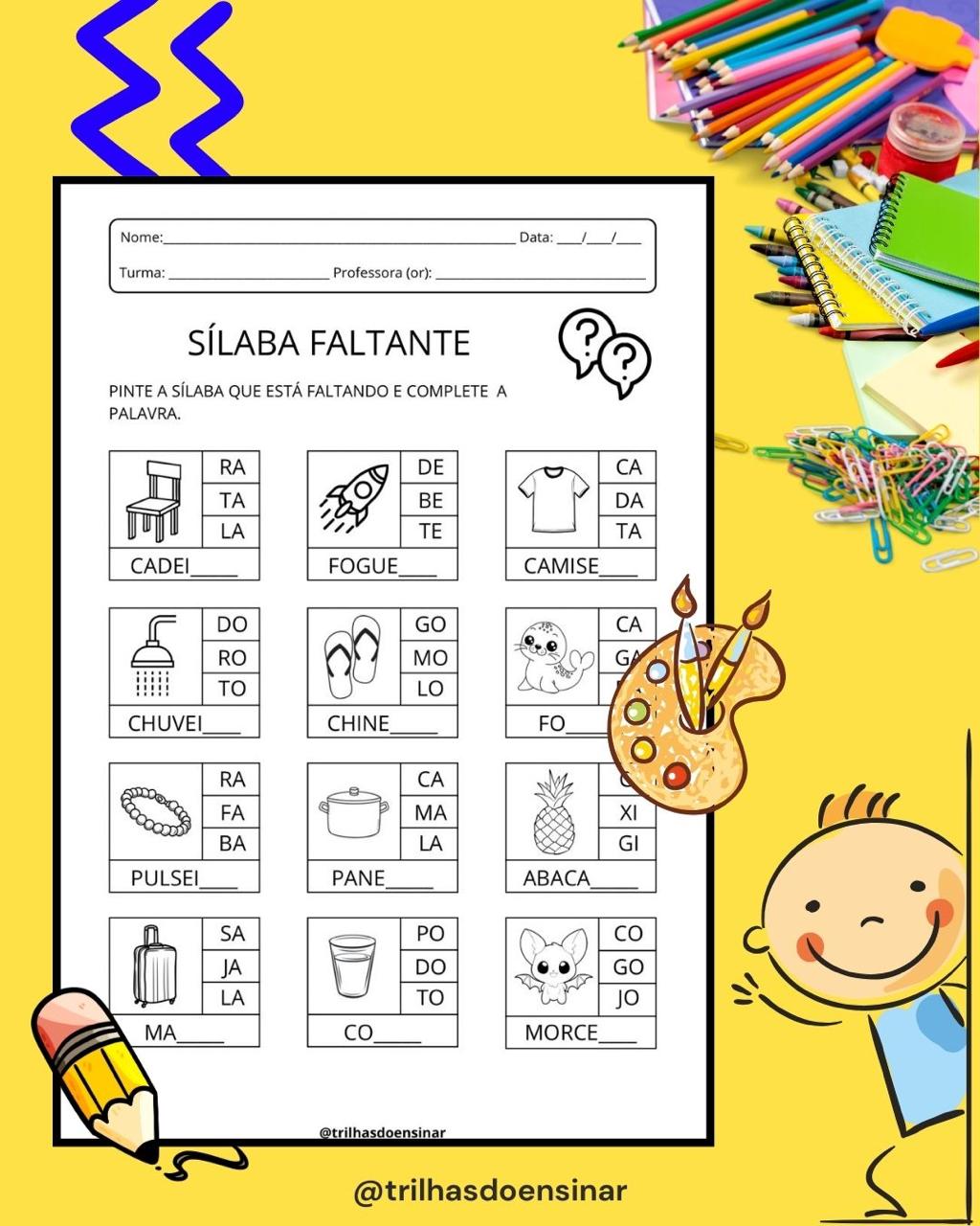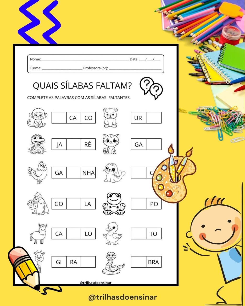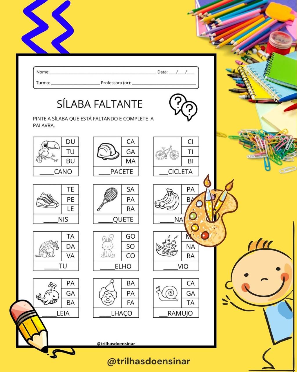 São 12 páginas de atividades inéditas totalmente focadas no desenvolvimento dos alunos que estão na hipótese silábica de escrita. ✅❣️😍
