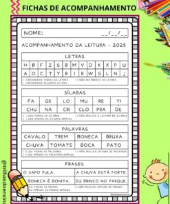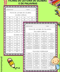 – fichas de leitura (sílabas, palavras e frases);