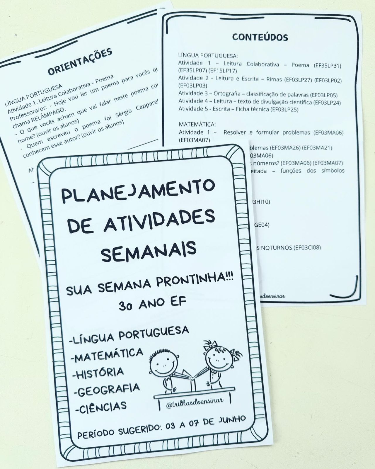📚📆👩🏫✨ Planejamento Semanal de Atividades para Professores do 3º ano! ✨👩🏫📆📚