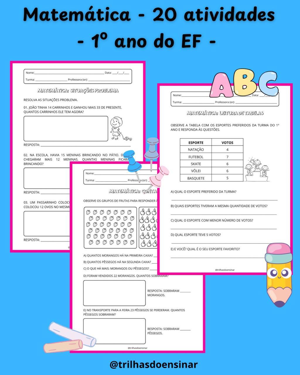 ✅ 20 atividades de Matemática