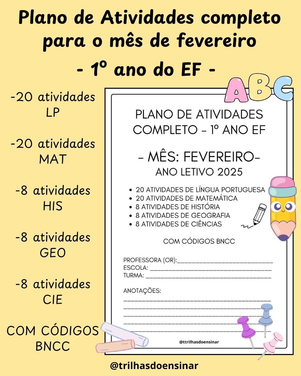 ❣️PLANO DE ATIVIDADES MÊS DE FEVEREIRO 1° ano EF❣️