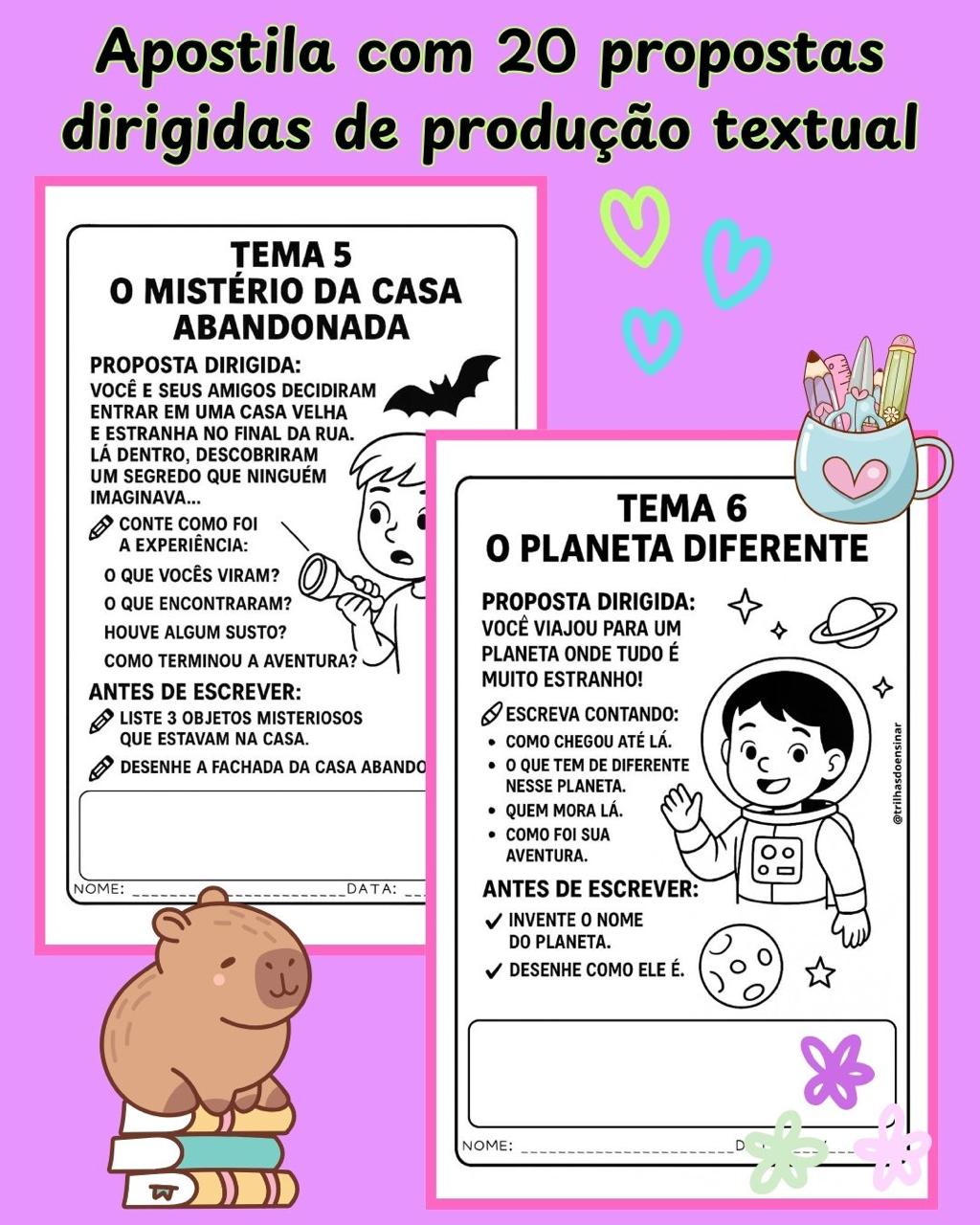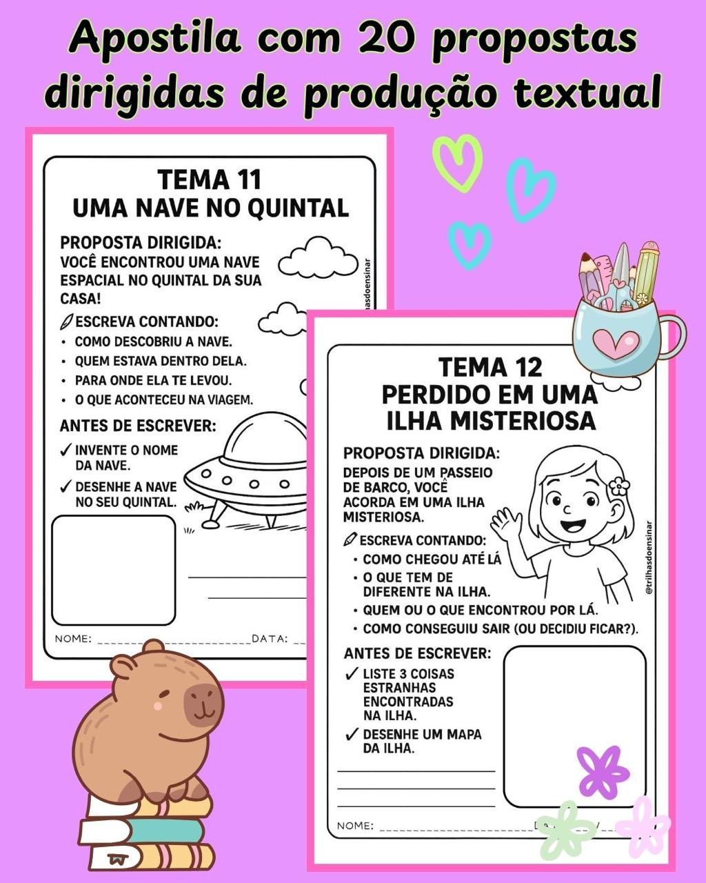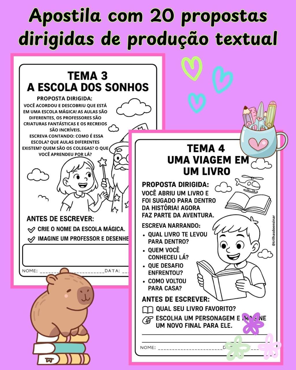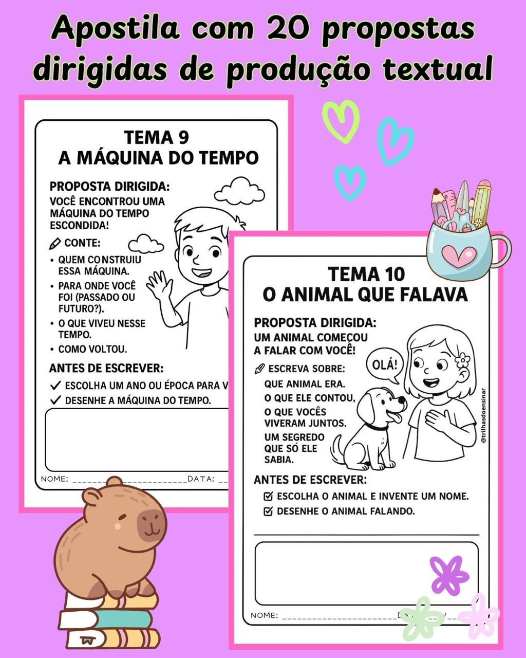 📄 São 20 produções textuais dirigidas, com propostas passo a passo que ajudam as crianças a organizar ideias, desenvolver o raciocínio e escrever com mais segurança e autonomia ao longo do tempo. 💡🧠