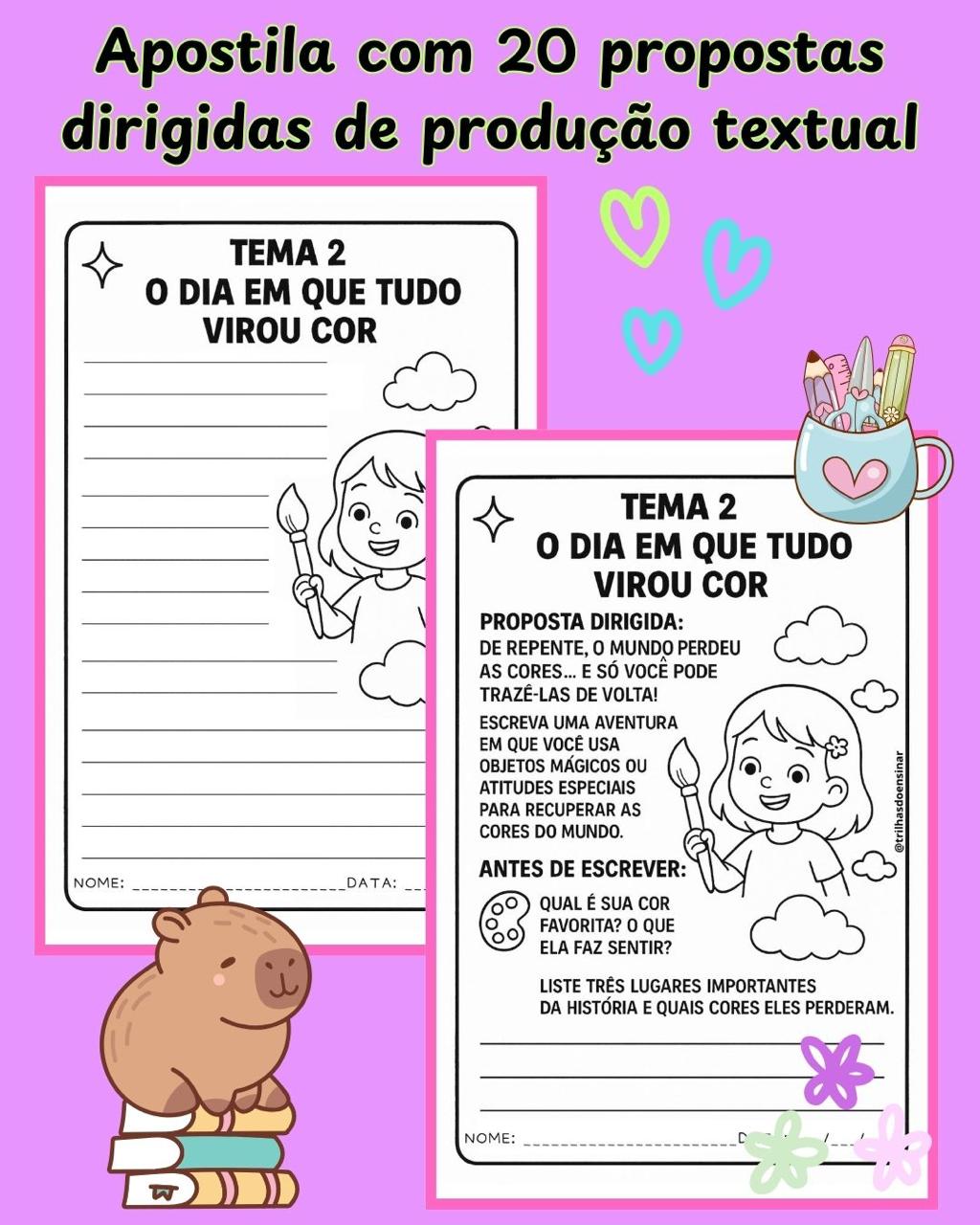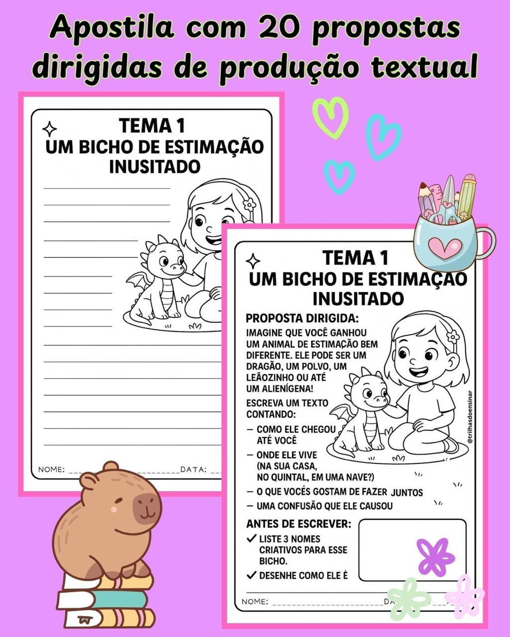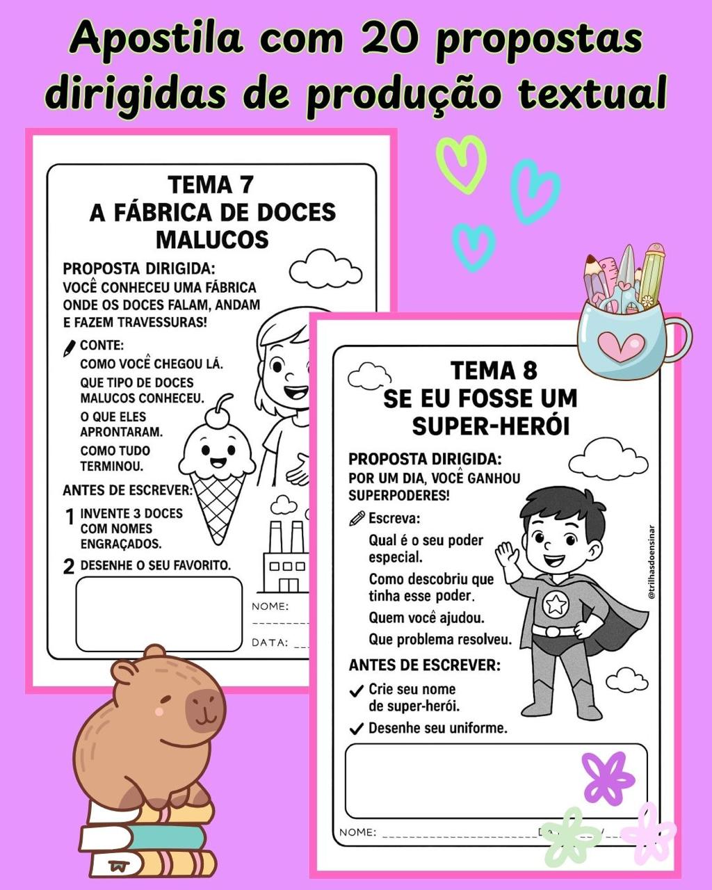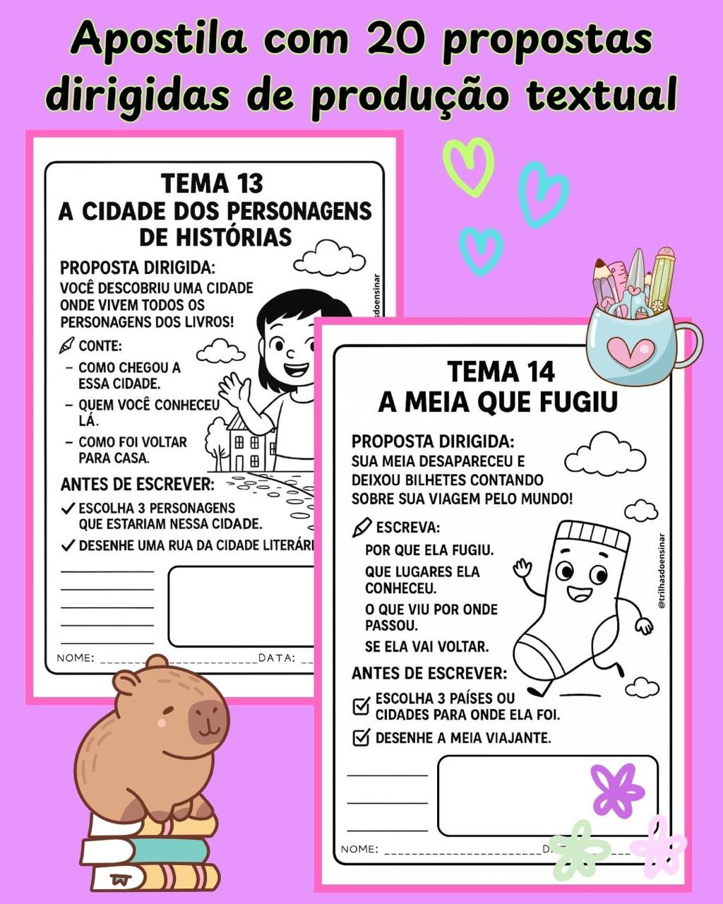 📄 São 20 produções textuais dirigidas, com propostas passo a passo que ajudam as crianças a organizar ideias, desenvolver o raciocínio e escrever com mais segurança e autonomia ao longo do tempo. 💡🧠