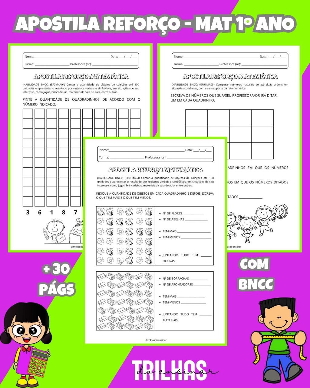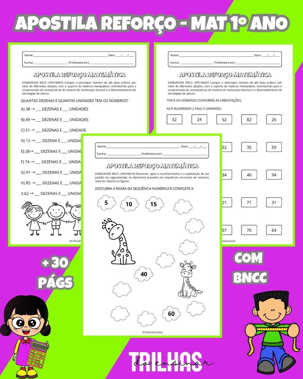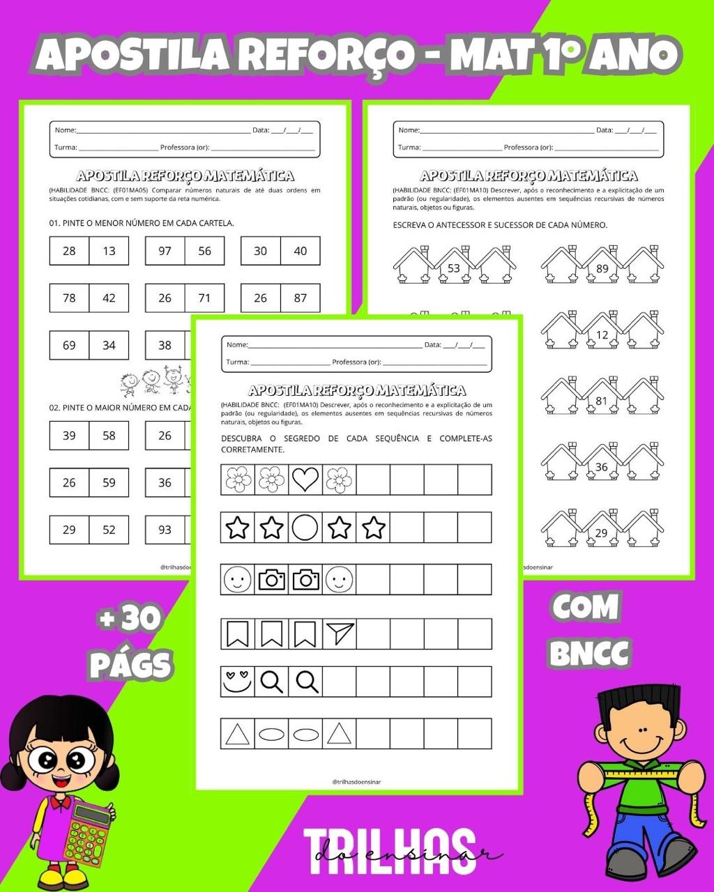 🚨✨APOSTILA DE REVISÃO / REFORÇO MATEMÁTICA 1º ANO: se a sua turma do 1º ano precisa recuperar e consolidar as habilidades essenciais antes de fechar o ano, essa é a apostila certa para você. 📚🔢