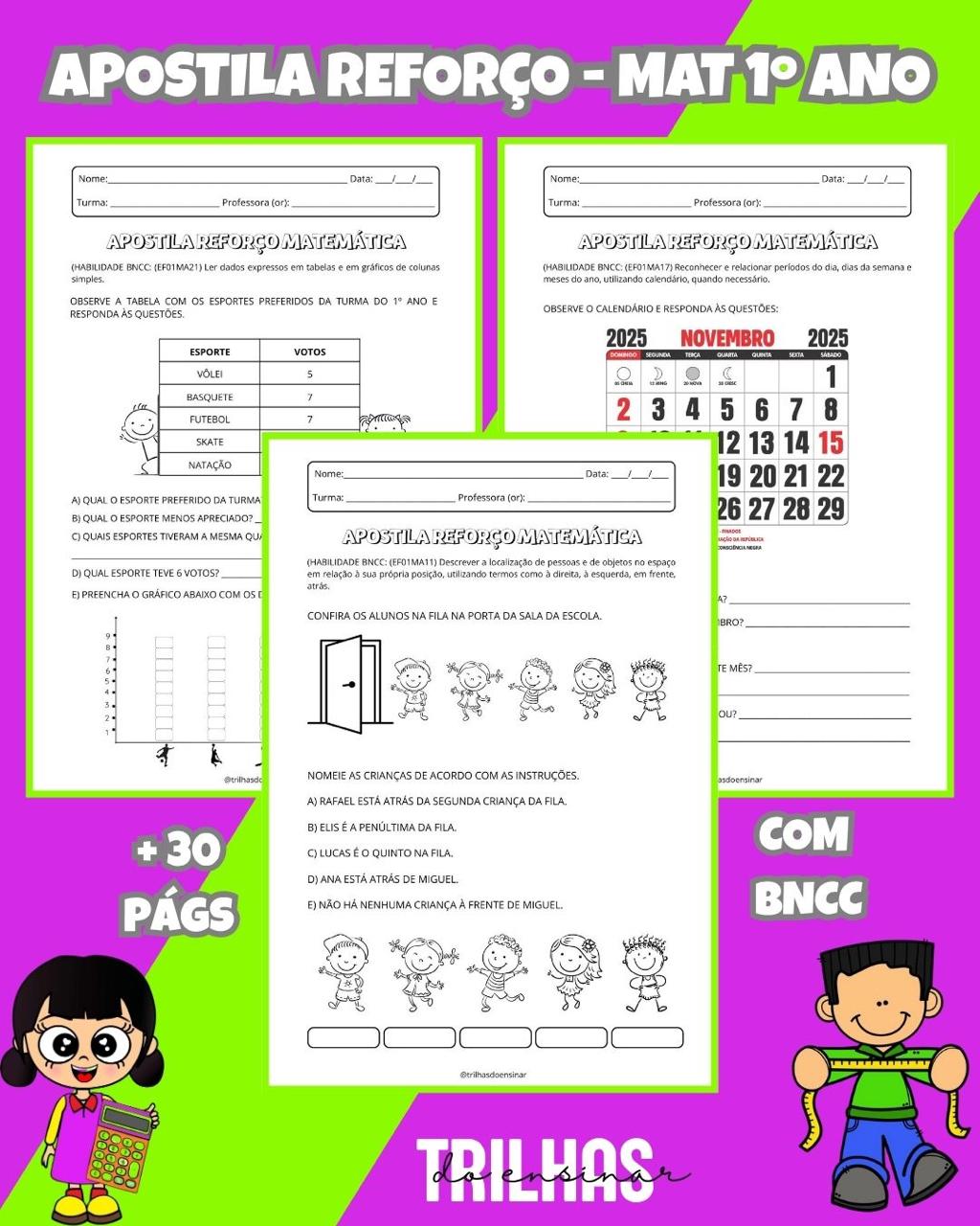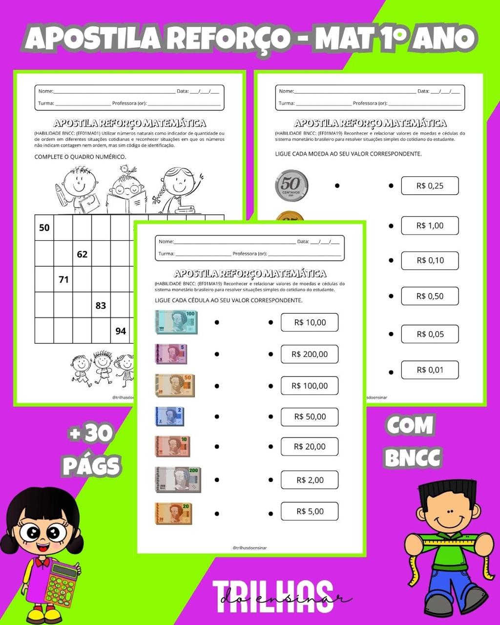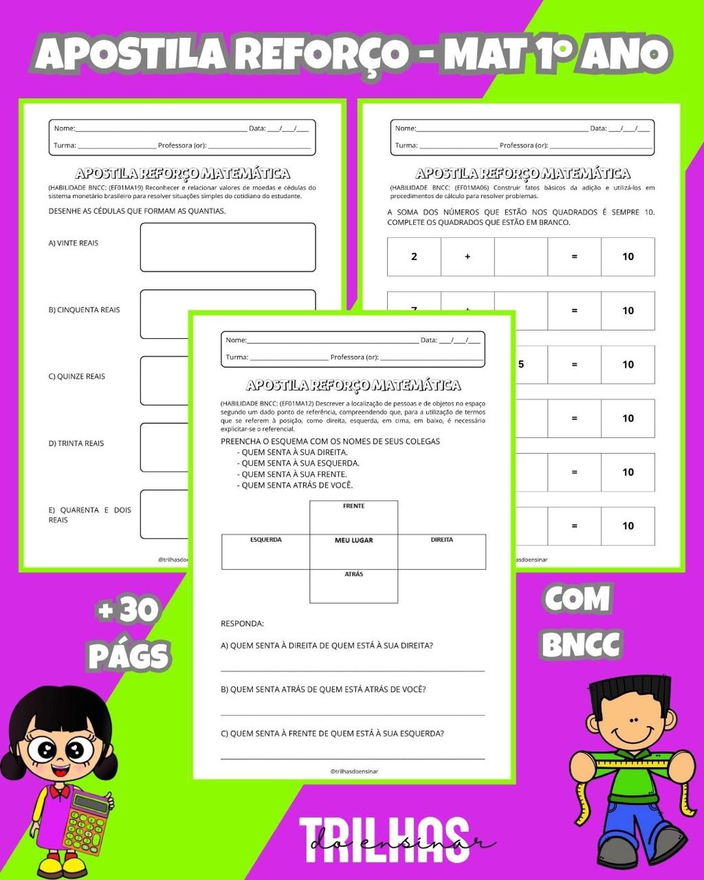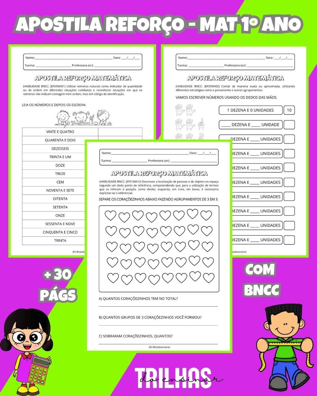 🚨✨APOSTILA DE REVISÃO / REFORÇO MATEMÁTICA 1º ANO: se a sua turma do 1º ano precisa recuperar e consolidar as habilidades essenciais antes de fechar o ano, essa é a apostila certa para você. 📚🔢