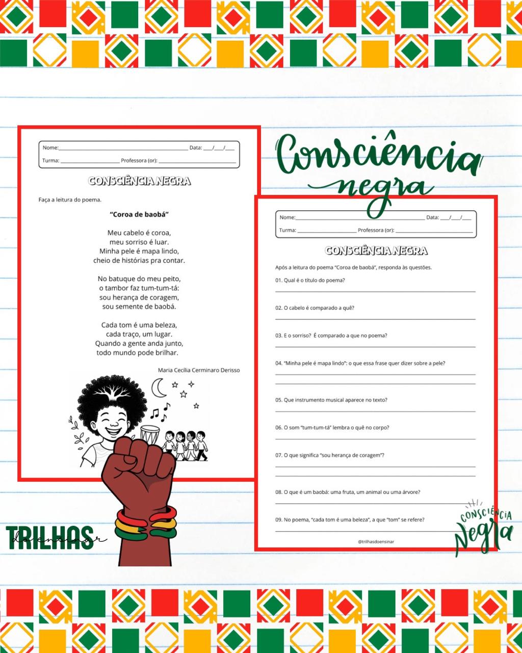 ✊🏾✨SEQUÊNCIA DE ATIVIDADES CONSCIÊNCIA NEGRA – 3º ANO ✊🏾✨