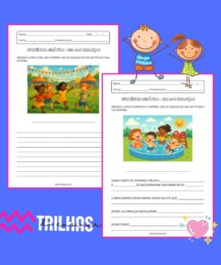 • Leitura de história (“A Festa de Dia das Crianças na Escola Alegria”) com questões objetivas e abertas.