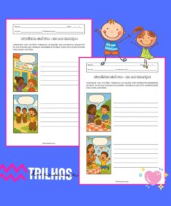 • Produção textual guiada: criar estrofe, completar e escrever história a partir de cena.