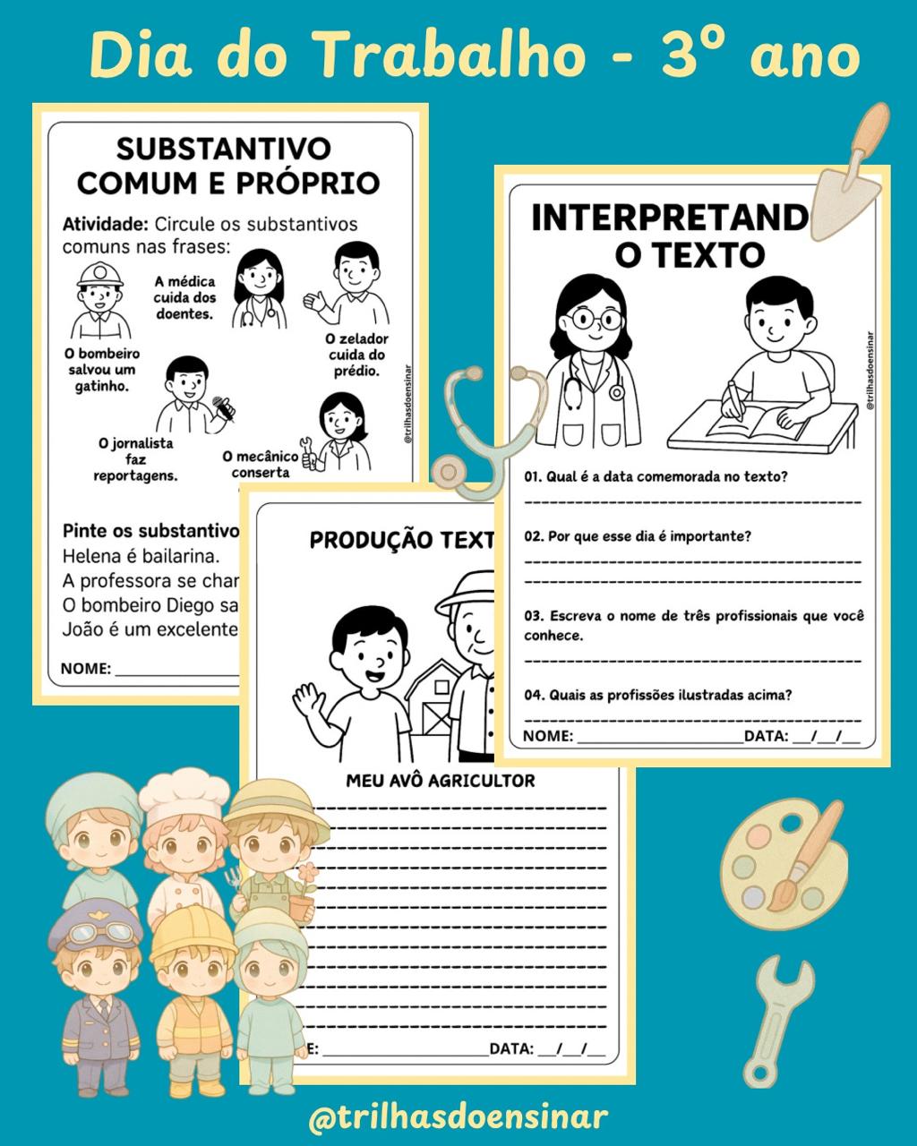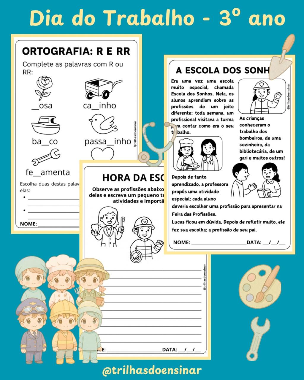 👩🏫✨ SEQUÊNCIA DE ATIVIDADES DIA DO TRABALHO – 3º ano! 📚🛠️👩⚕️