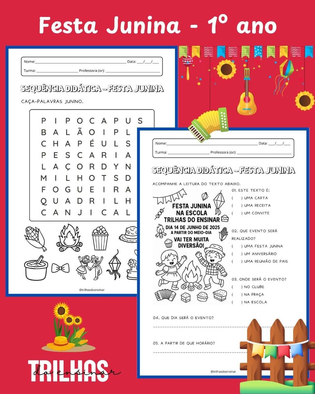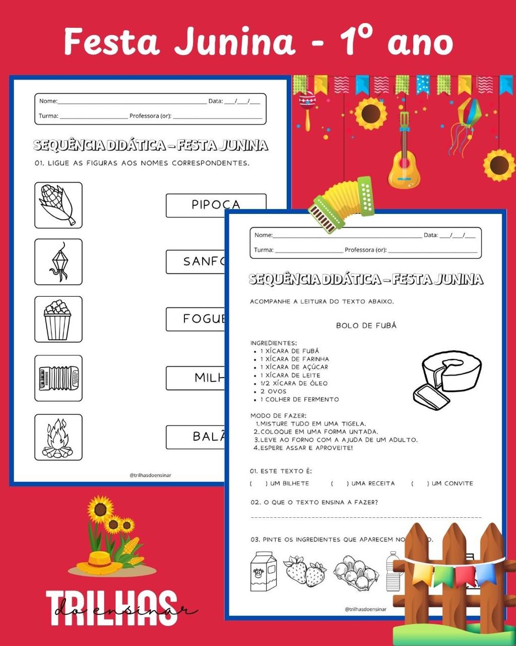 Sequência Didática – Tema Festa Junina (1º ano), um recurso completo para tornar o mês de junho ainda mais divertido e pedagógico!