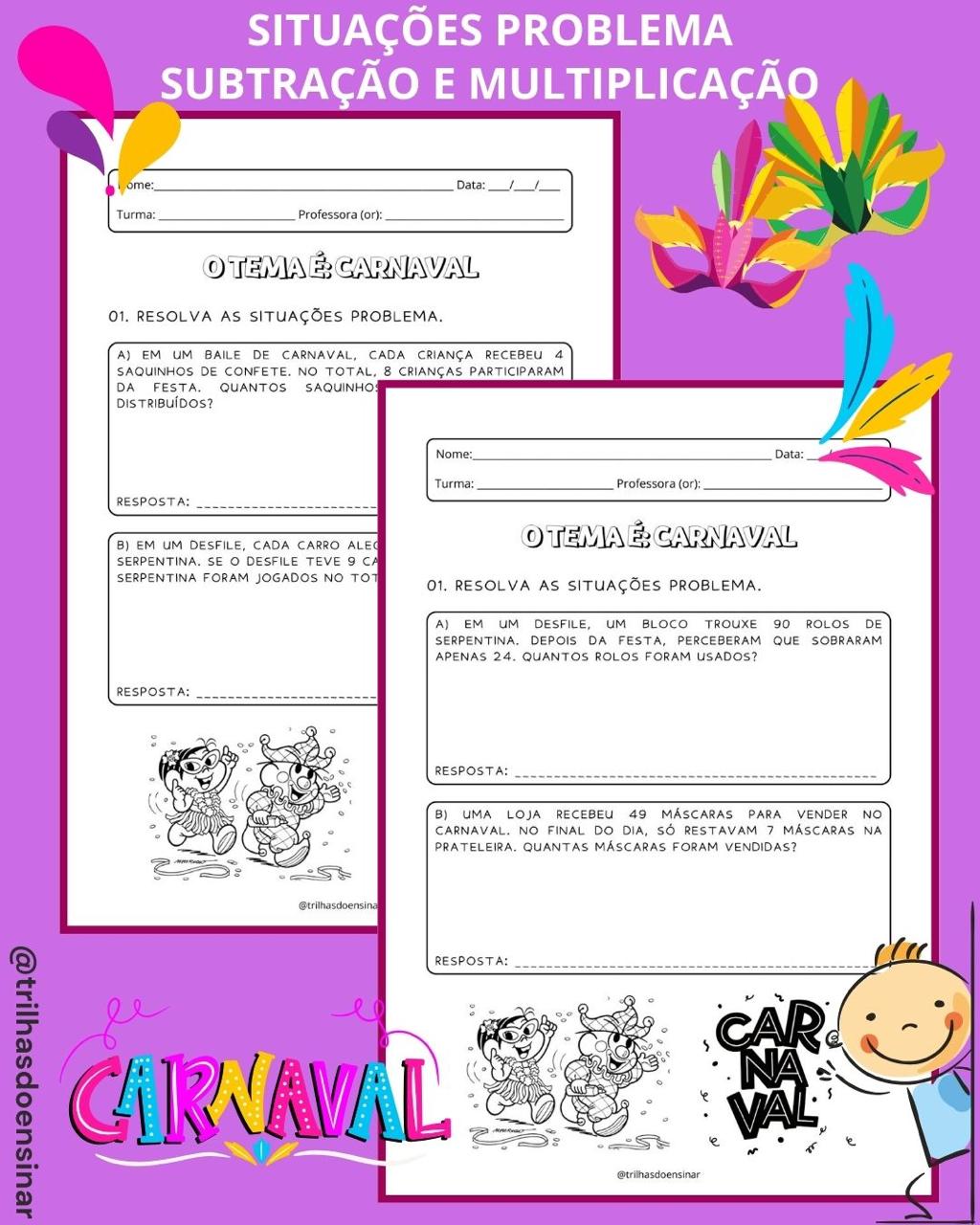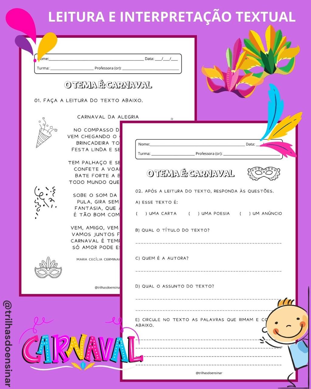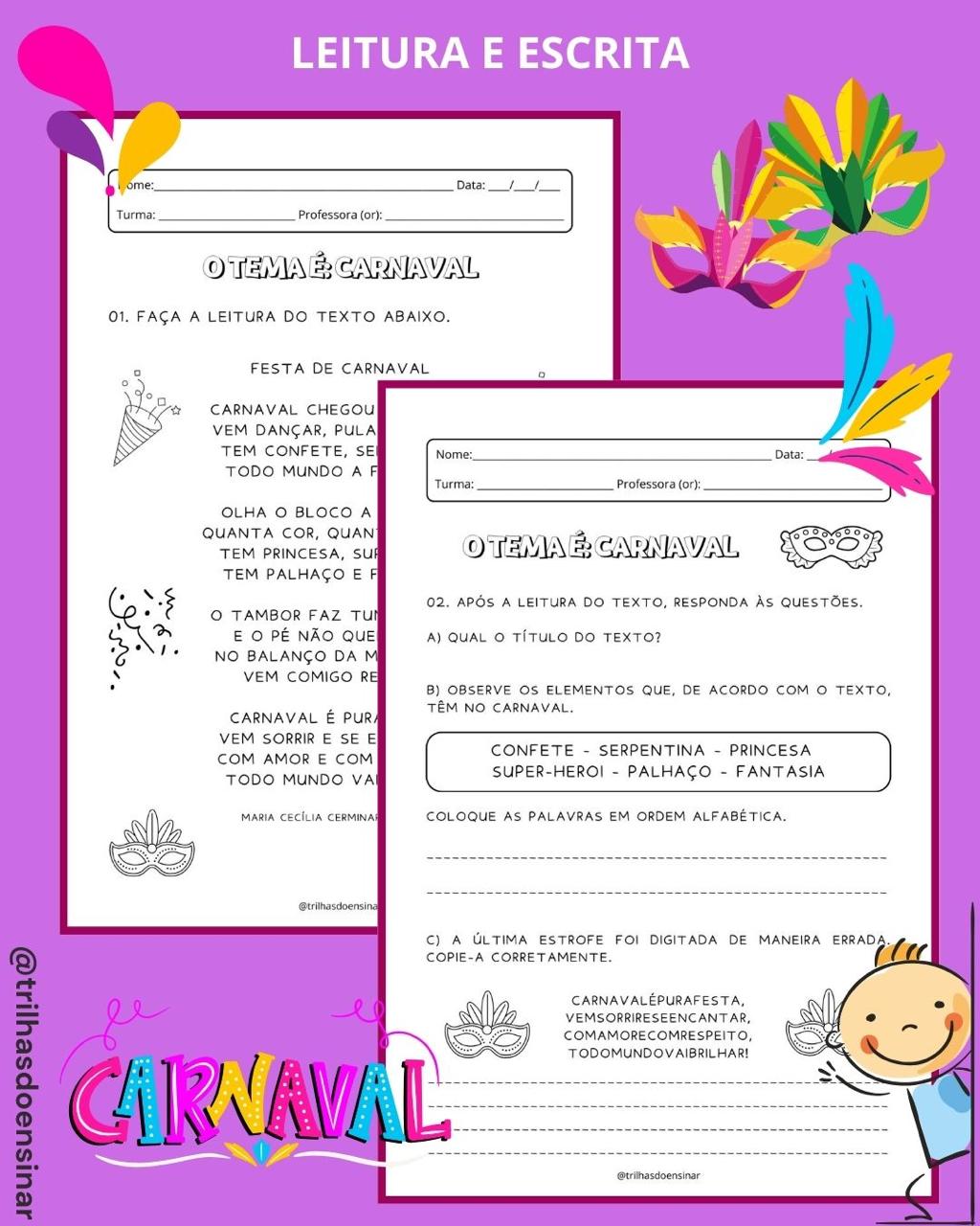 👉🏻O tema Carnaval pode ser um excelente recurso pedagógico para explorar, de forma contextualizada, as habilidades de leitura e interpretação e também a matemática!