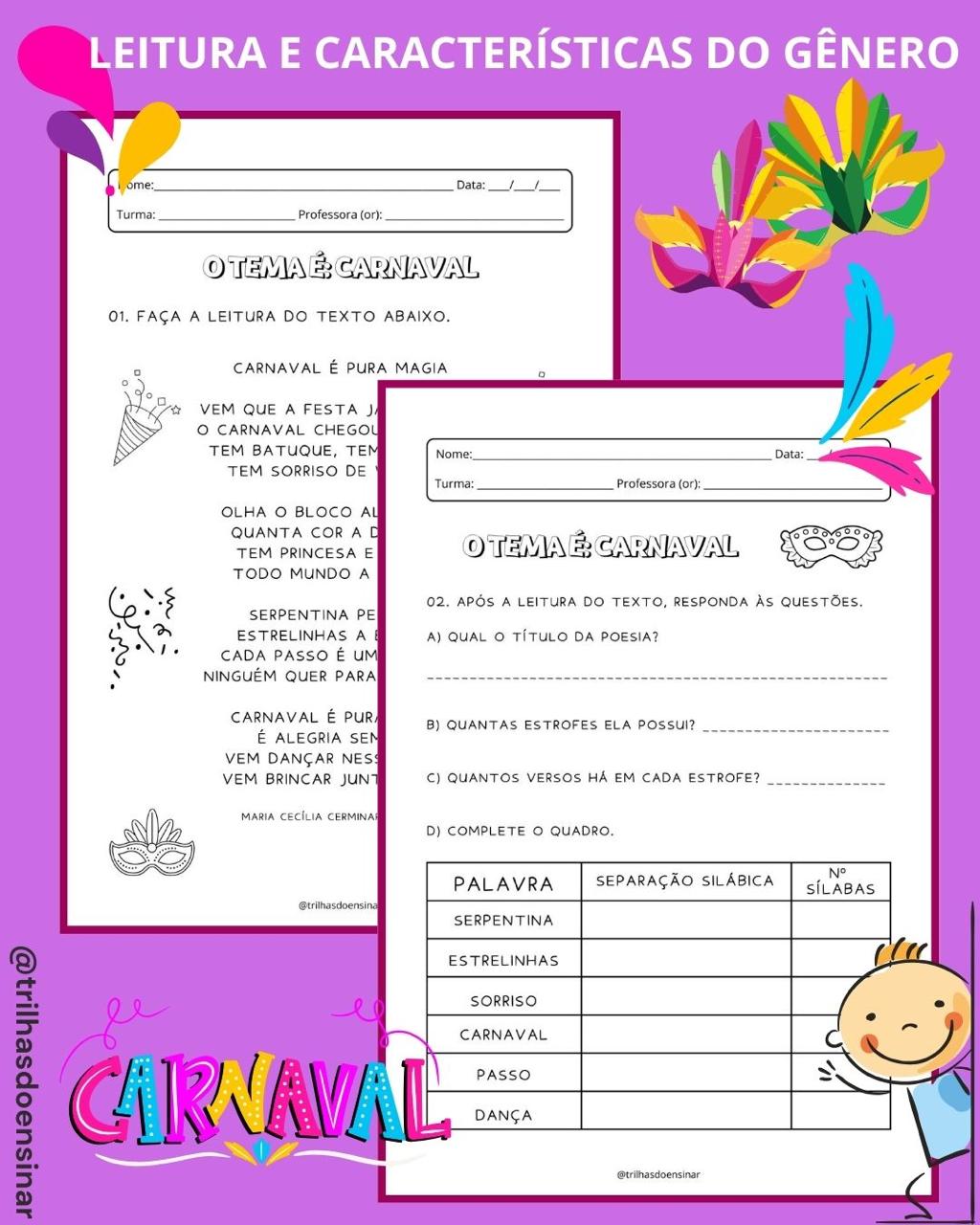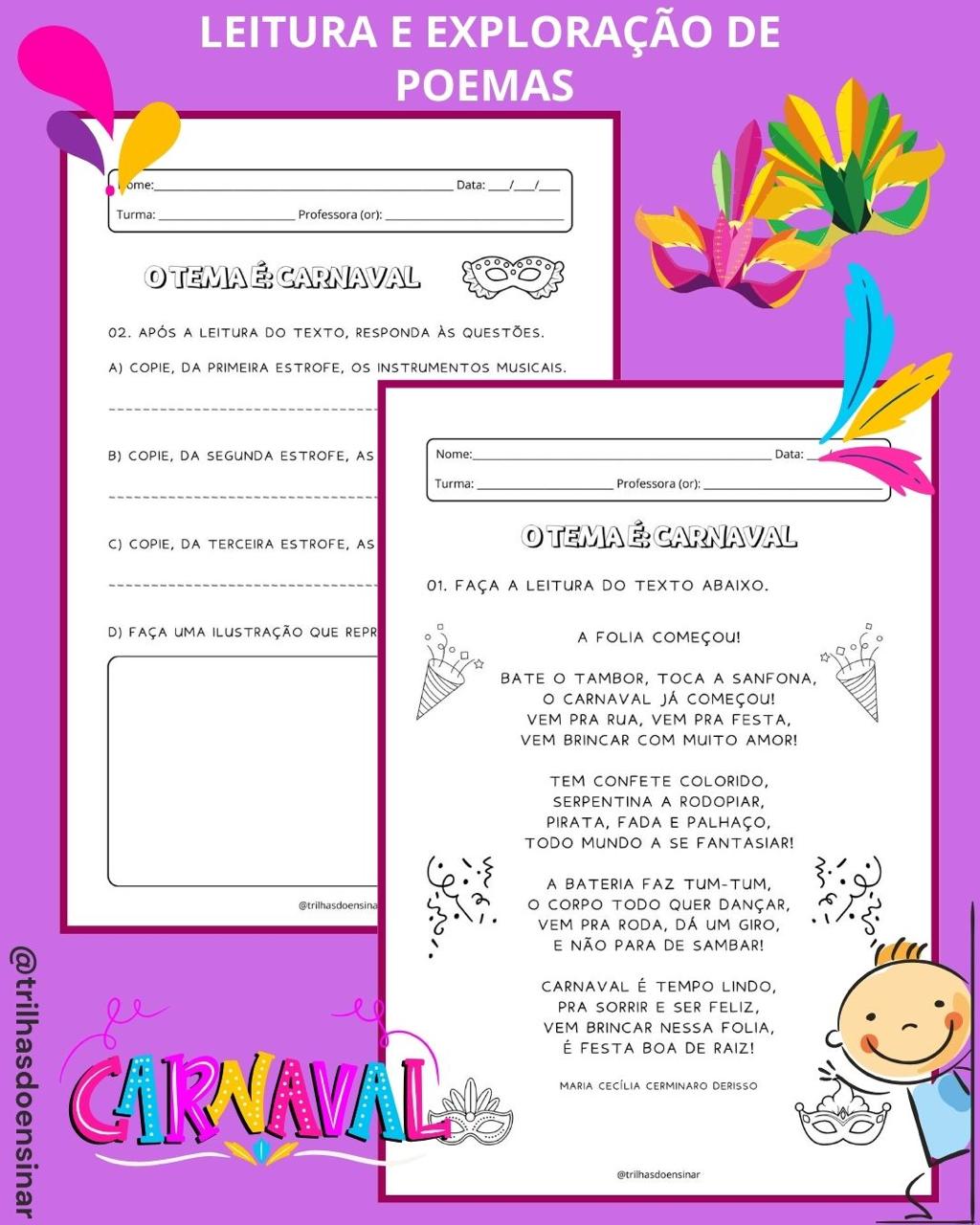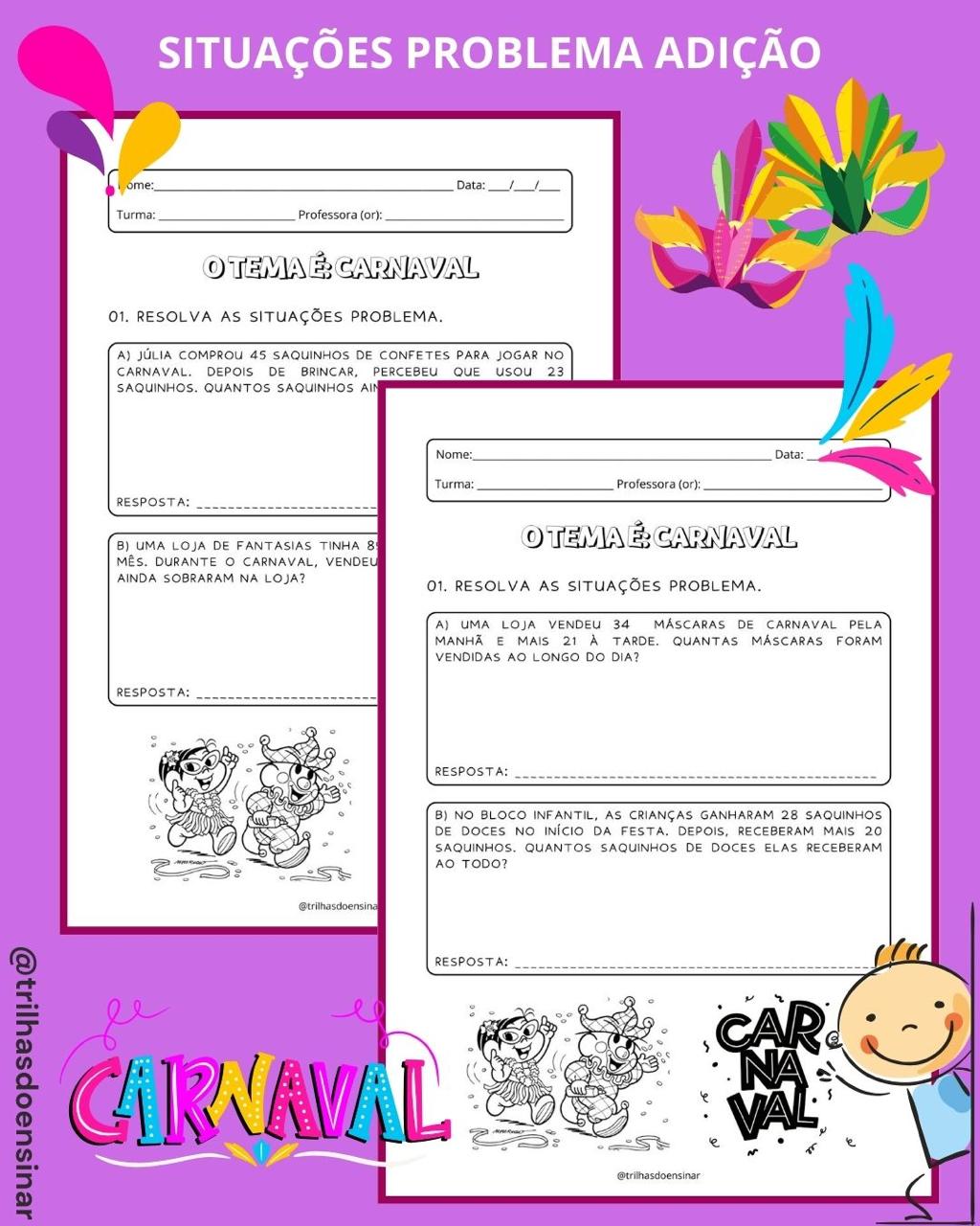 👉🏻O tema Carnaval pode ser um excelente recurso pedagógico para explorar, de forma contextualizada, as habilidades de leitura e interpretação e também a matemática!