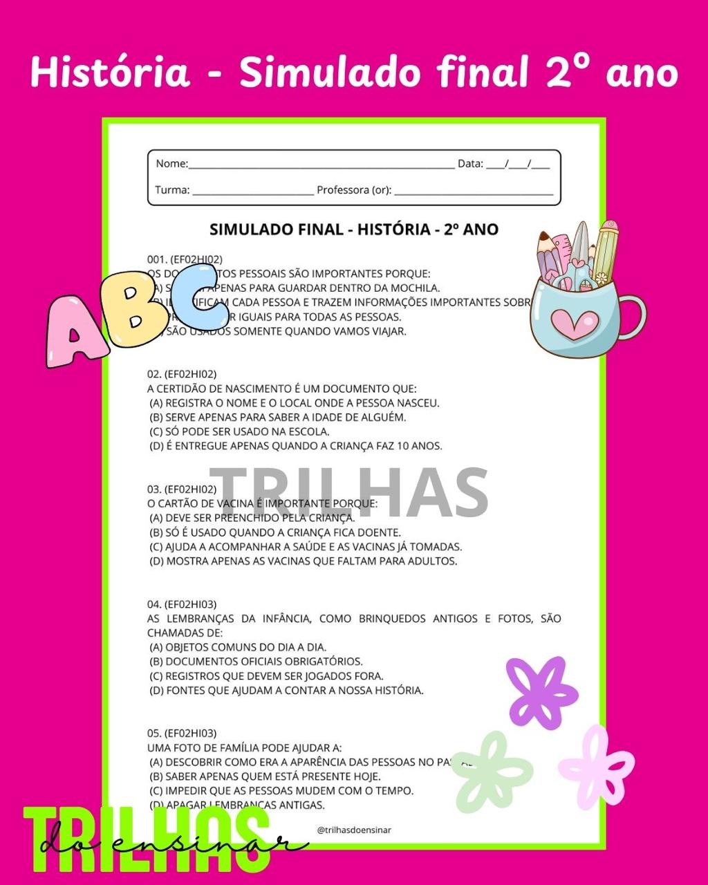 ✨📚 SIMULADO FINAL – HISTÓRIA – 2º ANO 📚✨