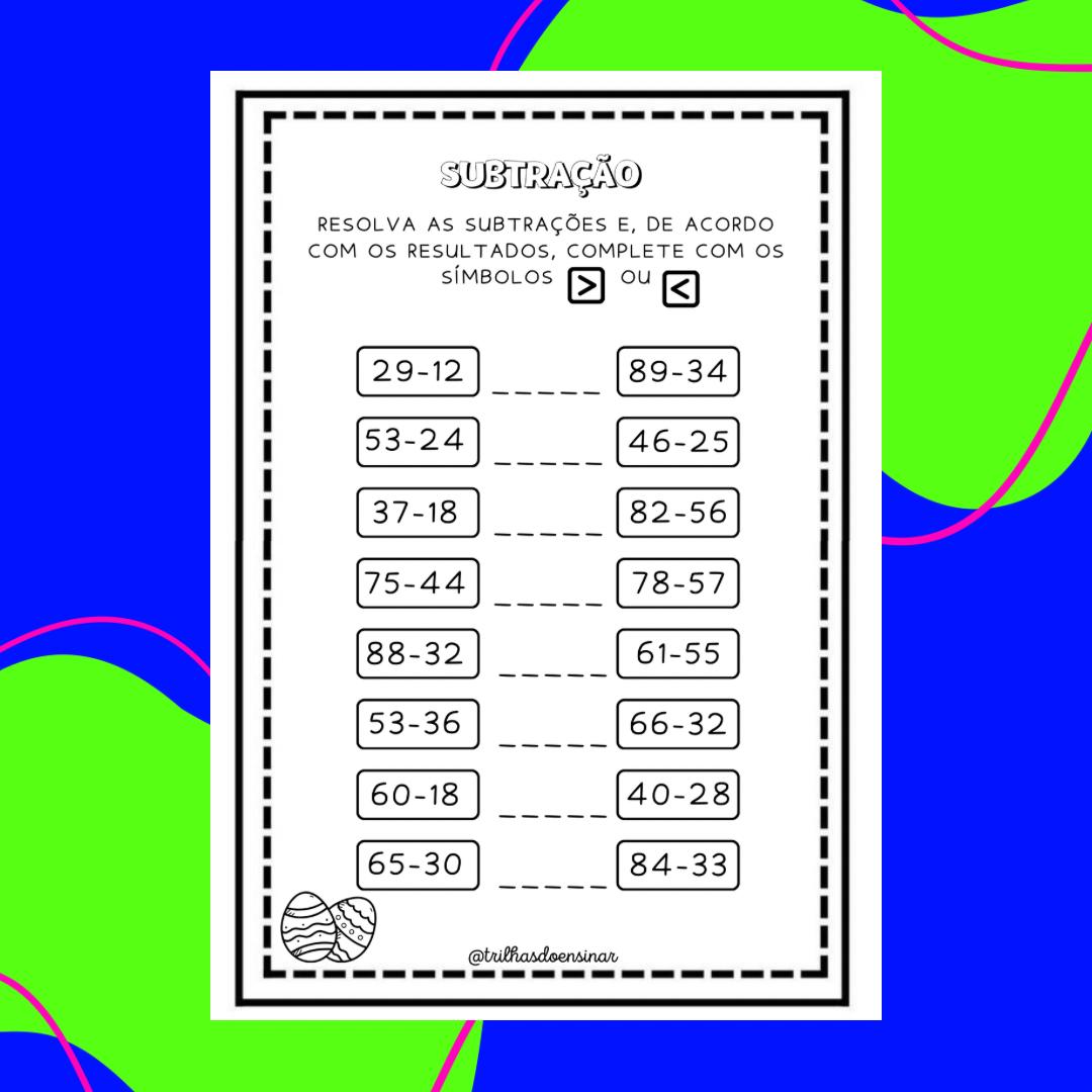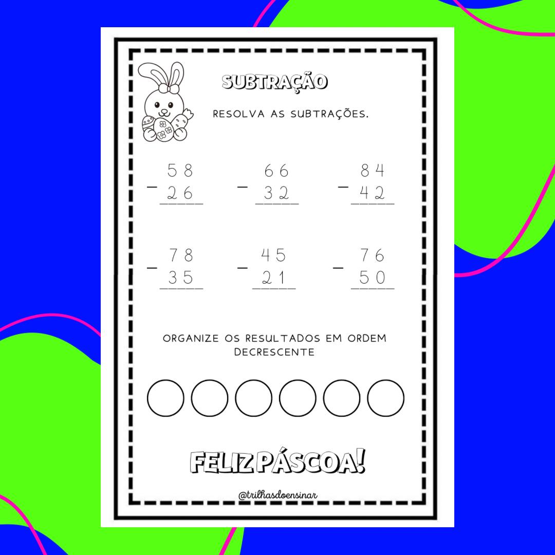 Sequência de Atividades SUBTRAÇÃO de PÁSCOA